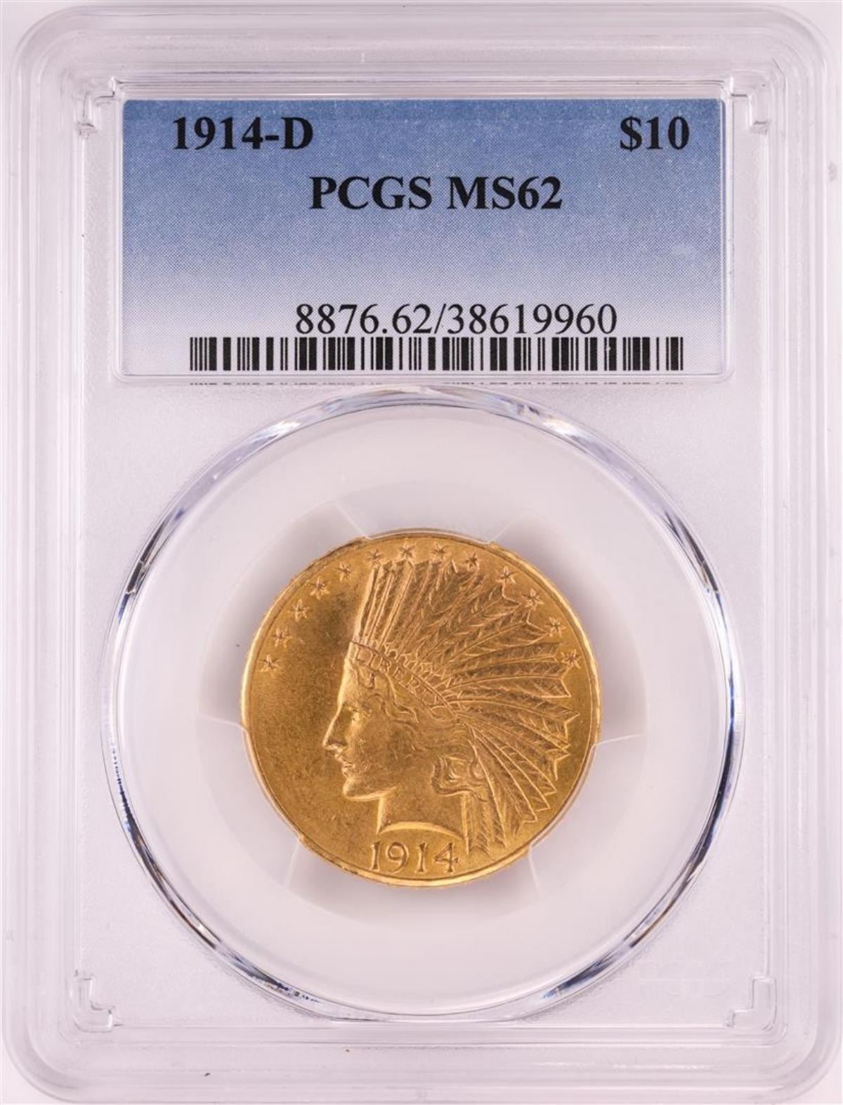 One 1914-D $10 Indian Head Eagle Gold Coin PCGS MS62.