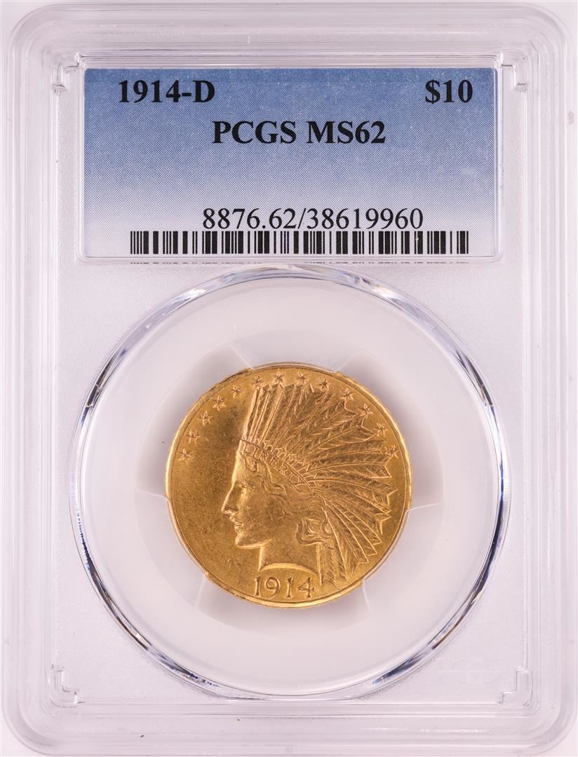 One 1914-D $10 Indian Head Eagle Gold Coin PCGS MS62.