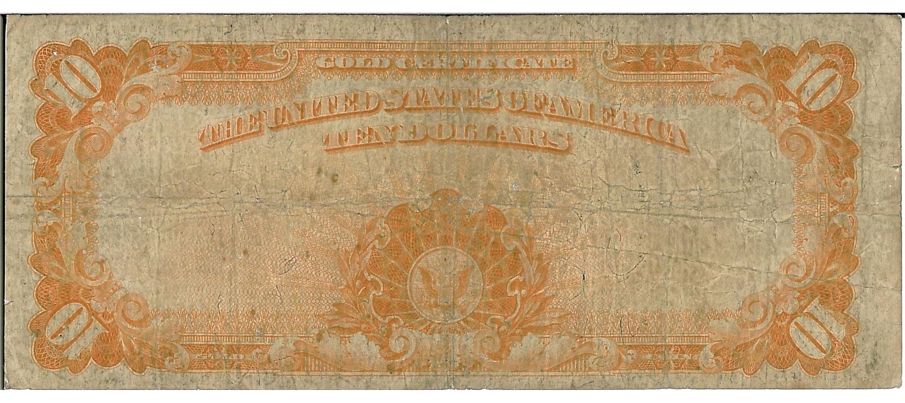One 1922 $10 Gold Certificate Bank Note. The serial number is 9992567.