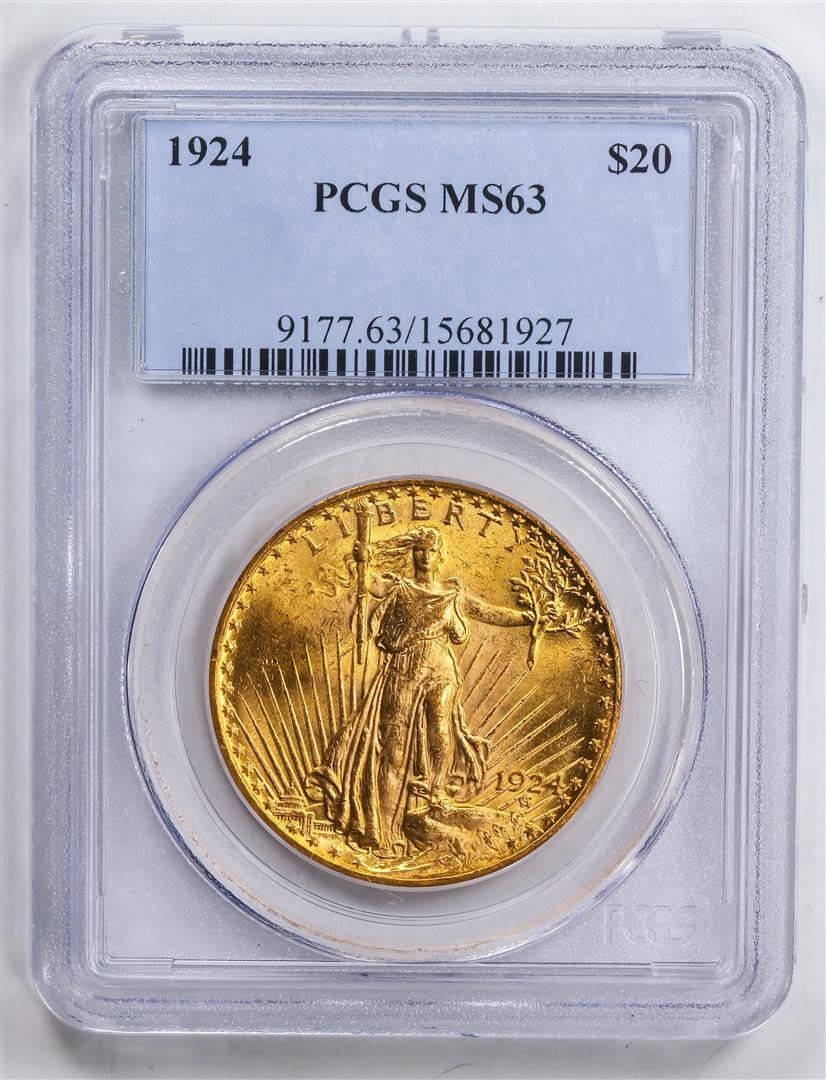 One 1924 $20 Double Eagle Gold Coin PCGS MS63.