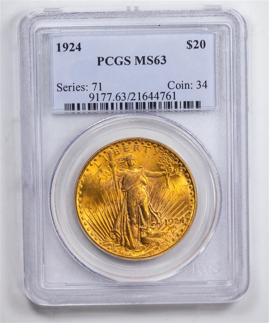 One 1924 $20 Double Eagle Gold Coin PCGS MS63.