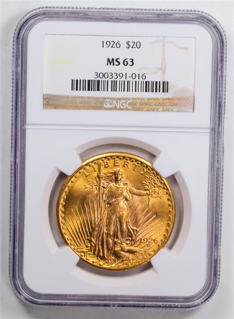 One 1926 $20 Double Eagle Gold Coin NGC MS63.