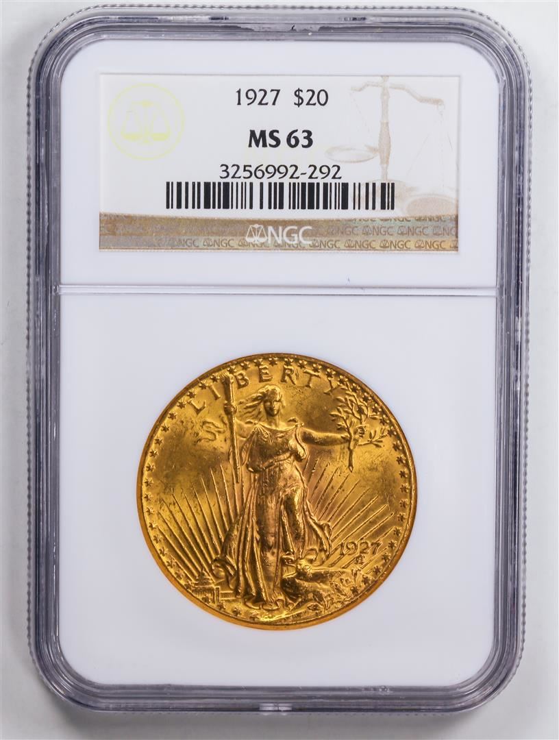 One 1927 $20 Double Eagle Gold Coin NGC MS63.