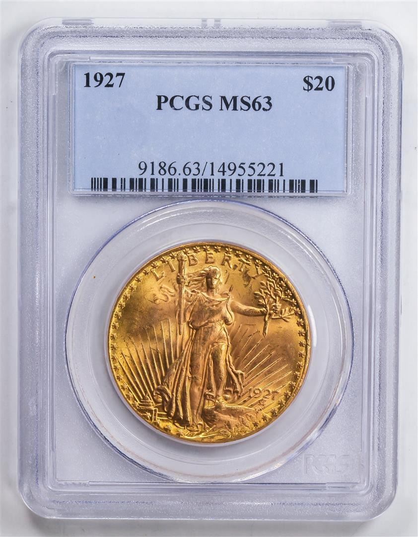 One 1927 $20 Double Eagle Gold Coin PCGS MS63.
