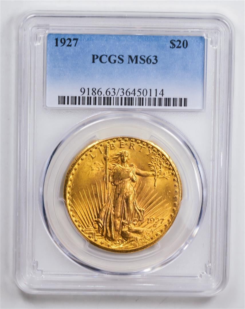 One 1927 $20 Double Eagle Gold Coin PCGS MS63.