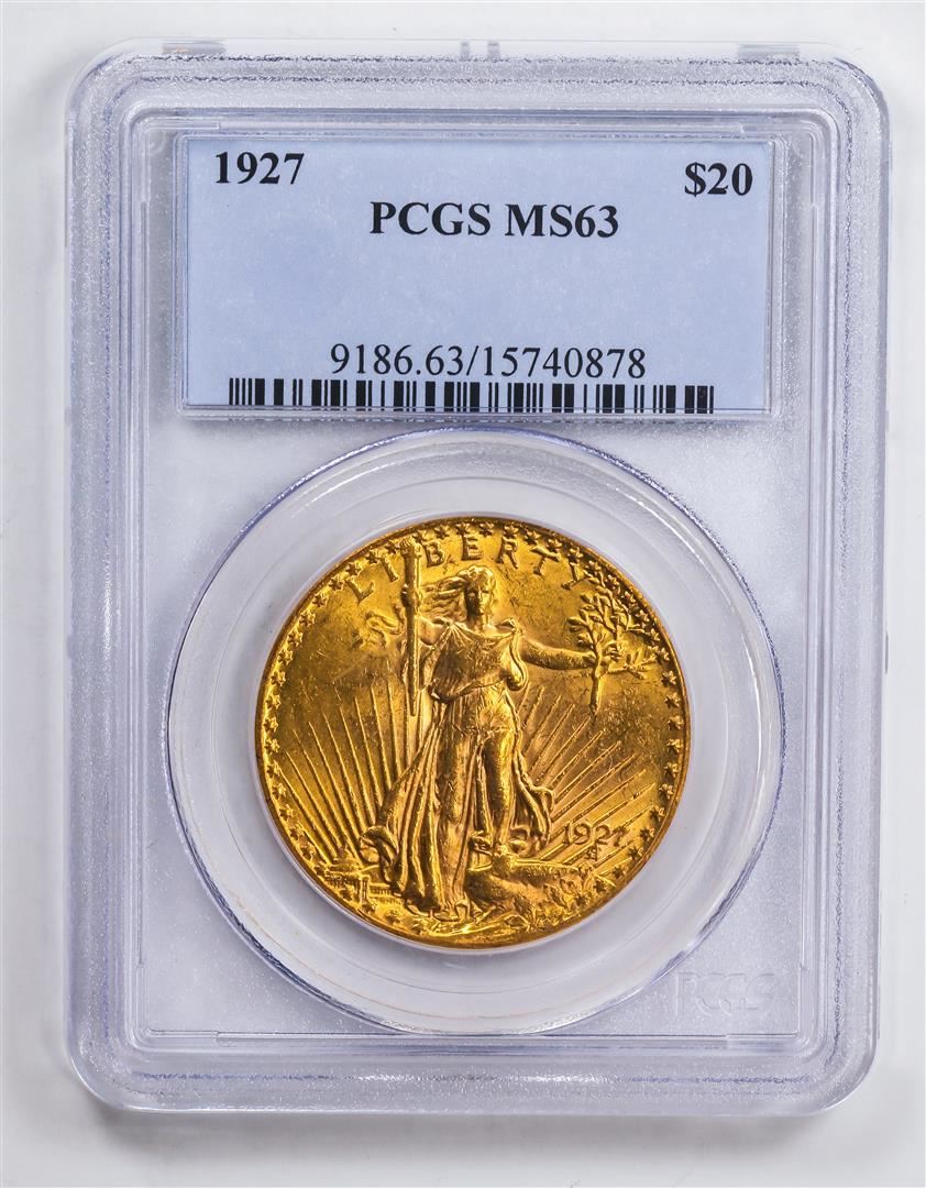 One 1927 $20 Double Eagle Gold Coin PCGS MS63.