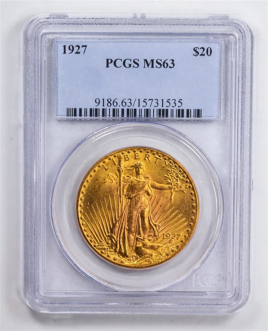 One 1927 $20 Double Eagle Gold Coin PCGS MS63.