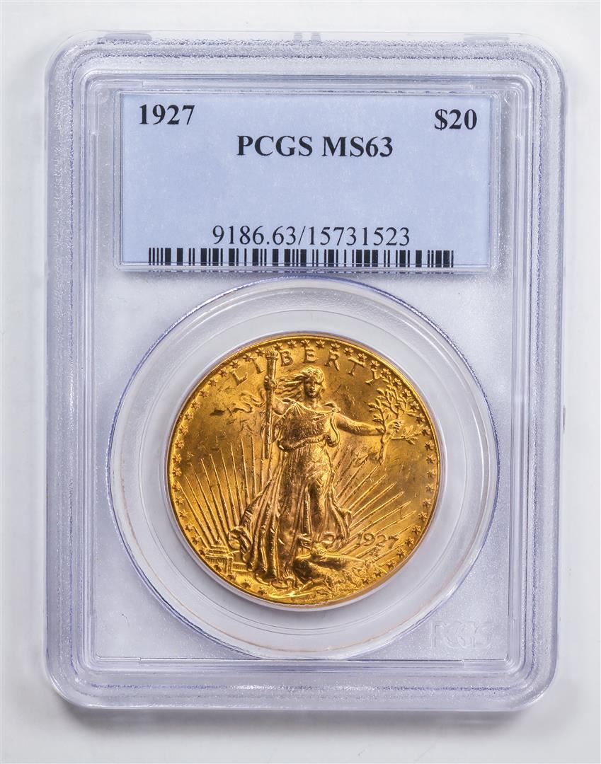 One 1927 $20 Double Eagle Gold Coin PCGS MS63.