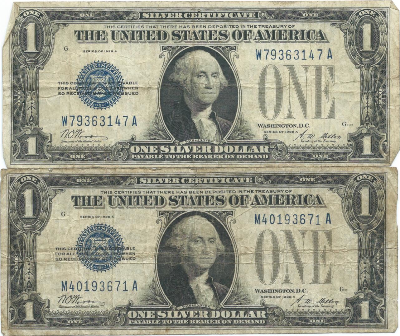 One 1928 $1 Silver Certificate Currency Lot of 2.