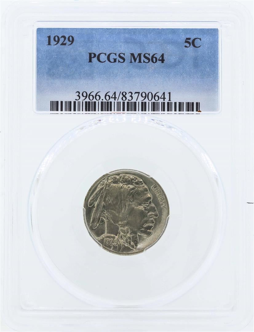 One 1929 Buffalo Nickel Coin PCGS MS64. PCGS Certified.