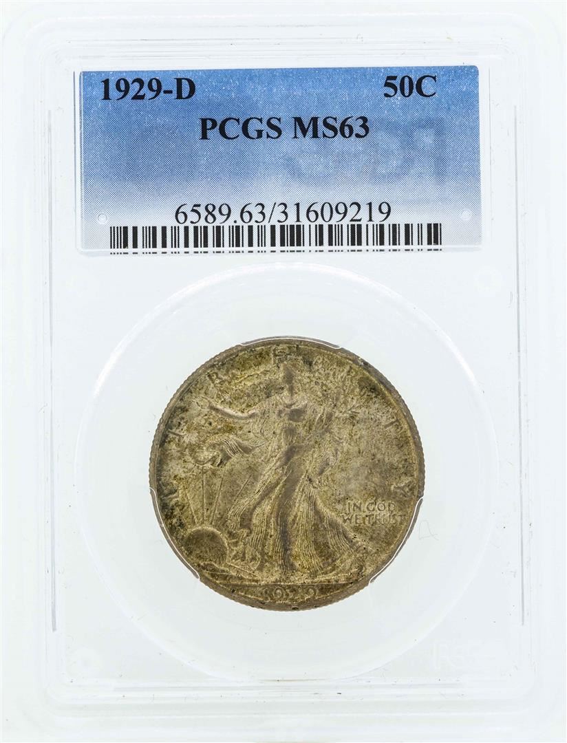 One 1929-D Walking Liberty Half Dollar Coin PCGS MS63. PCGS Certified.