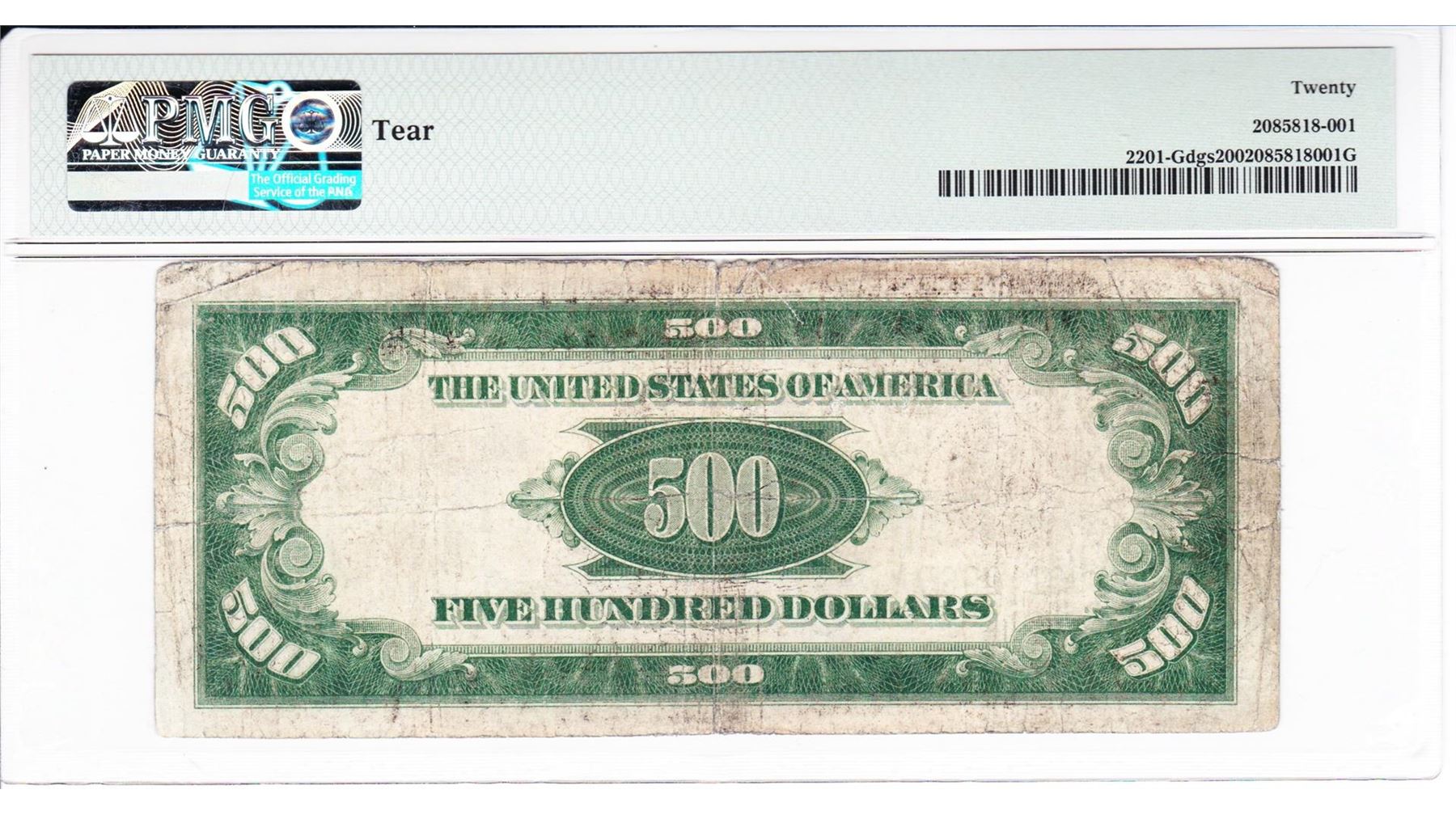 One 1934 $500 Federal Reserve Note Chicago PMG20 Very Fine.
