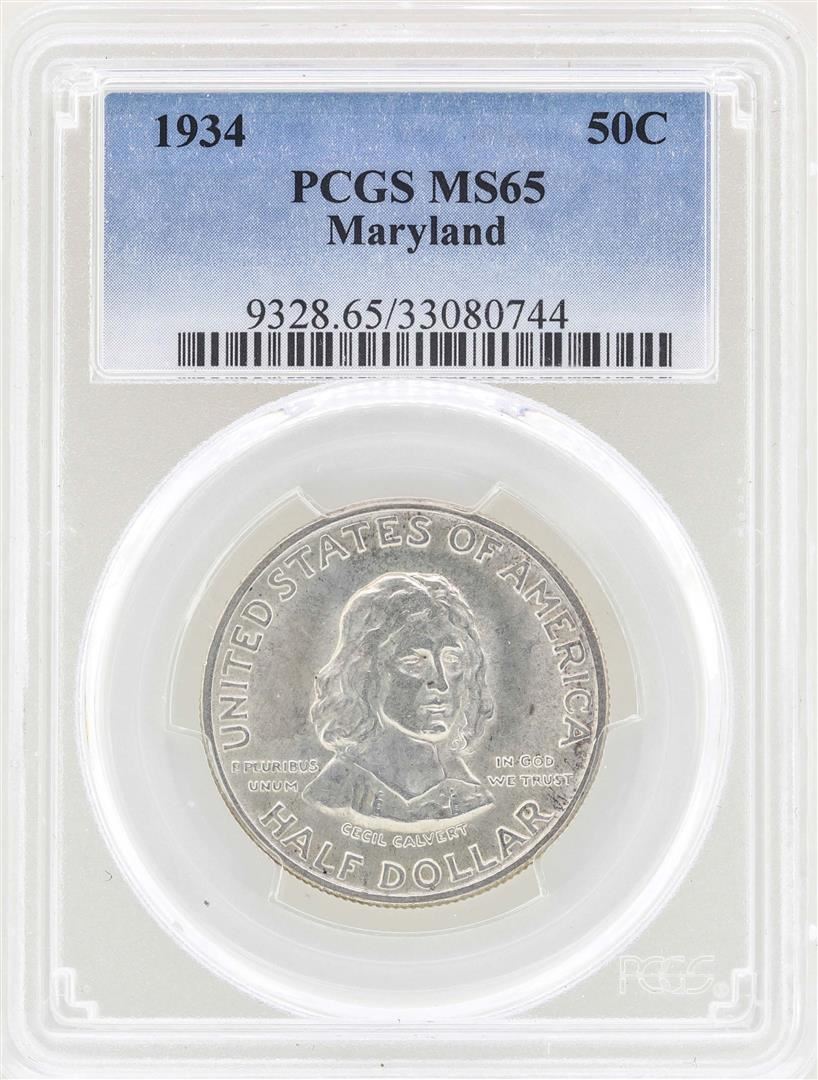 One 1934 Maryland Tercentenary Commemorative Half Dollar Coin PCGS MS65. PCGS Certified.