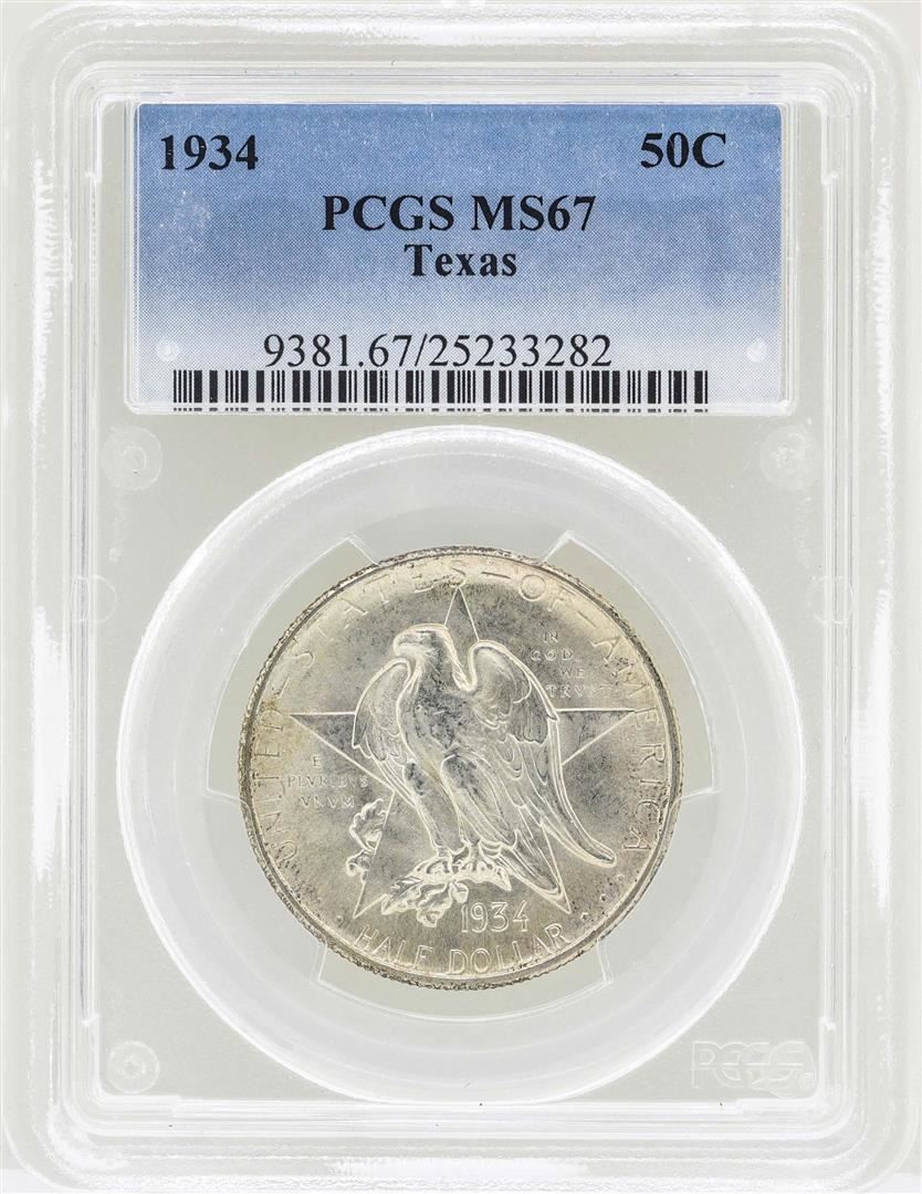 One 1934 Texas Commemorative Half Dollar Coin PCGS MS67. PCGS Certified.