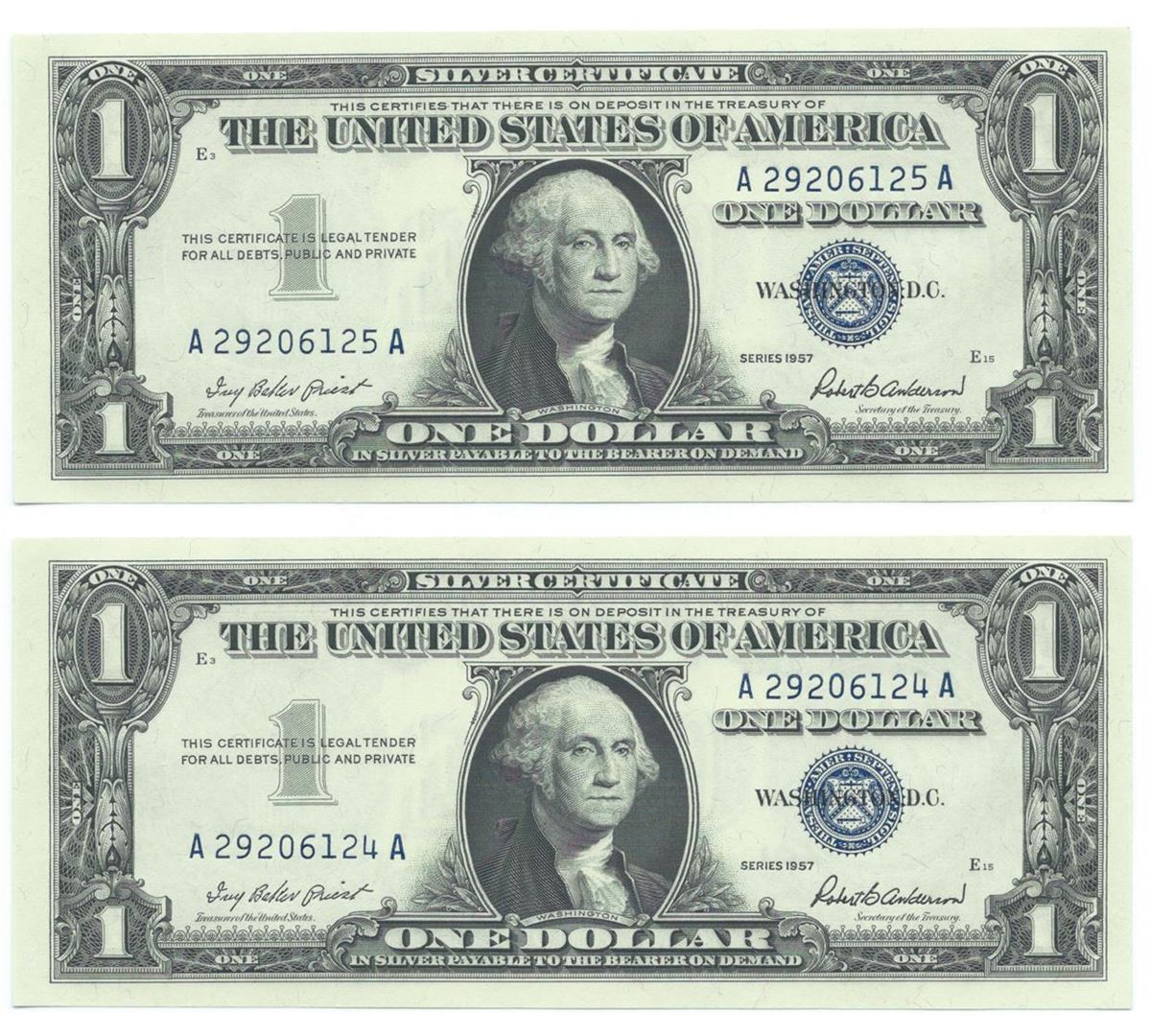 One 1957 $1 Silver Certificate Currency Lot of 2.