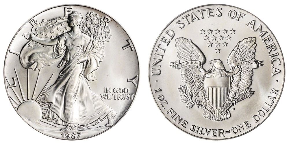One 1987 American Silver Eagle .999 Fine Silver Dollar Coin.