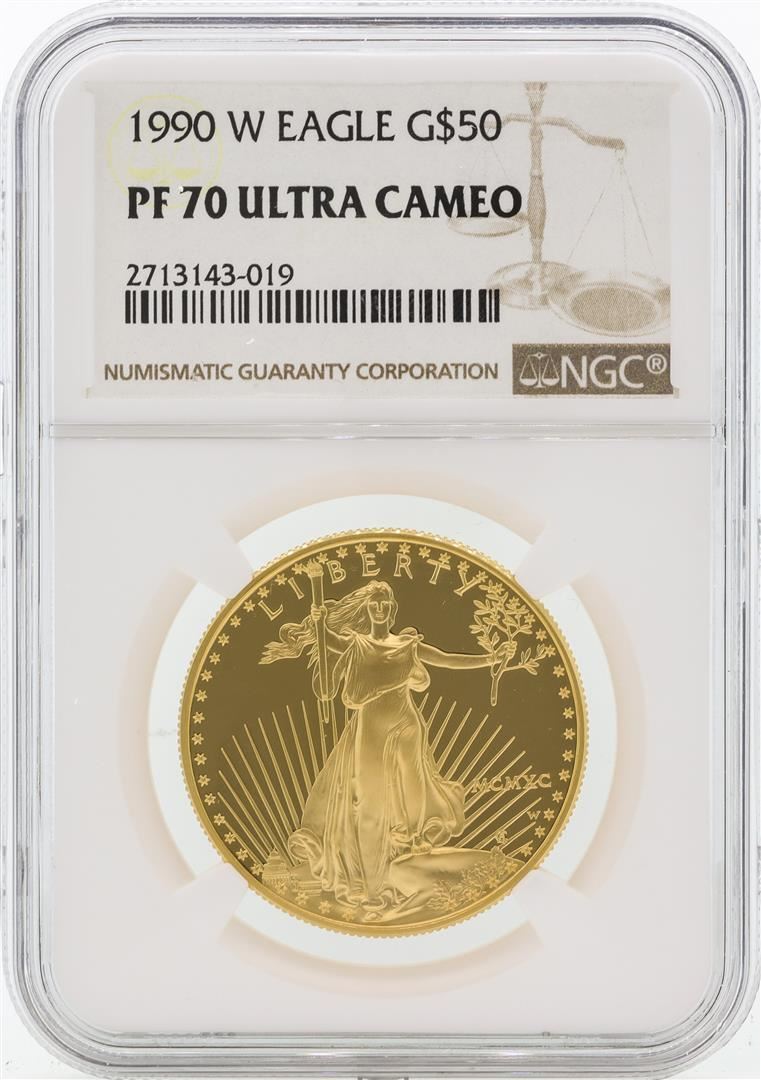 One 1990-W PF70 Ultra Cameo $50 Gold Eagle. NGC Certified.