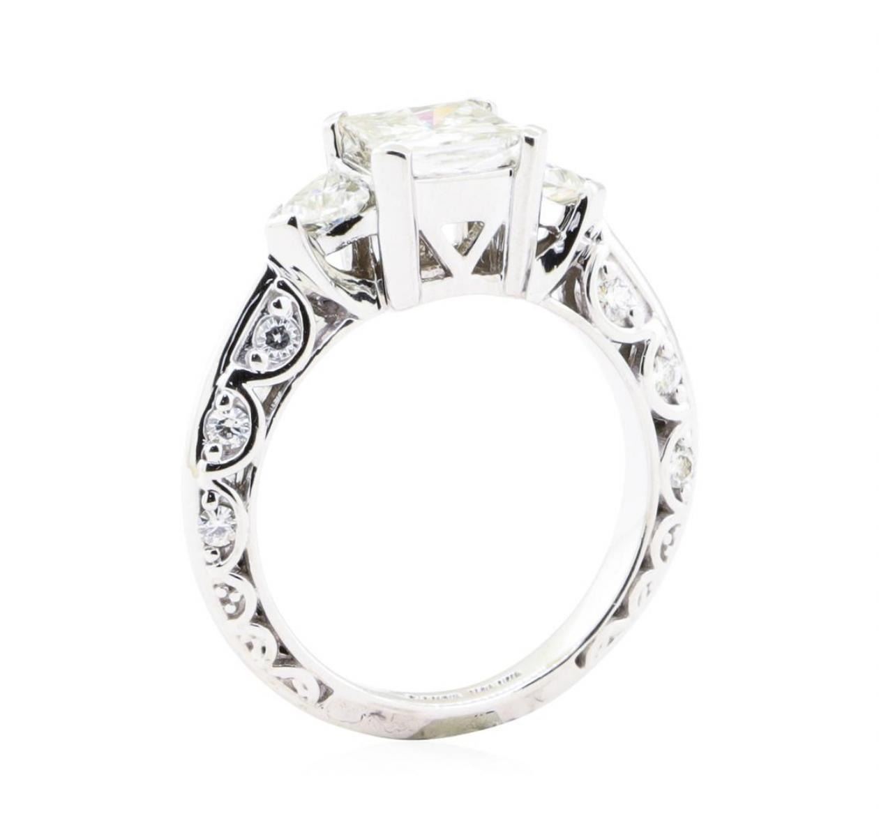 One ring featuring: 14KT white gold weighing 4.9 grams containing moissanite weighing 2.00 ctw.