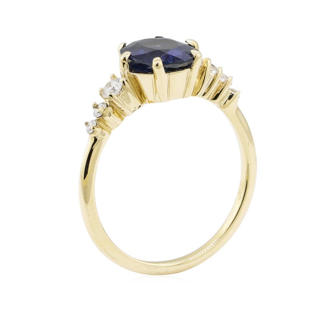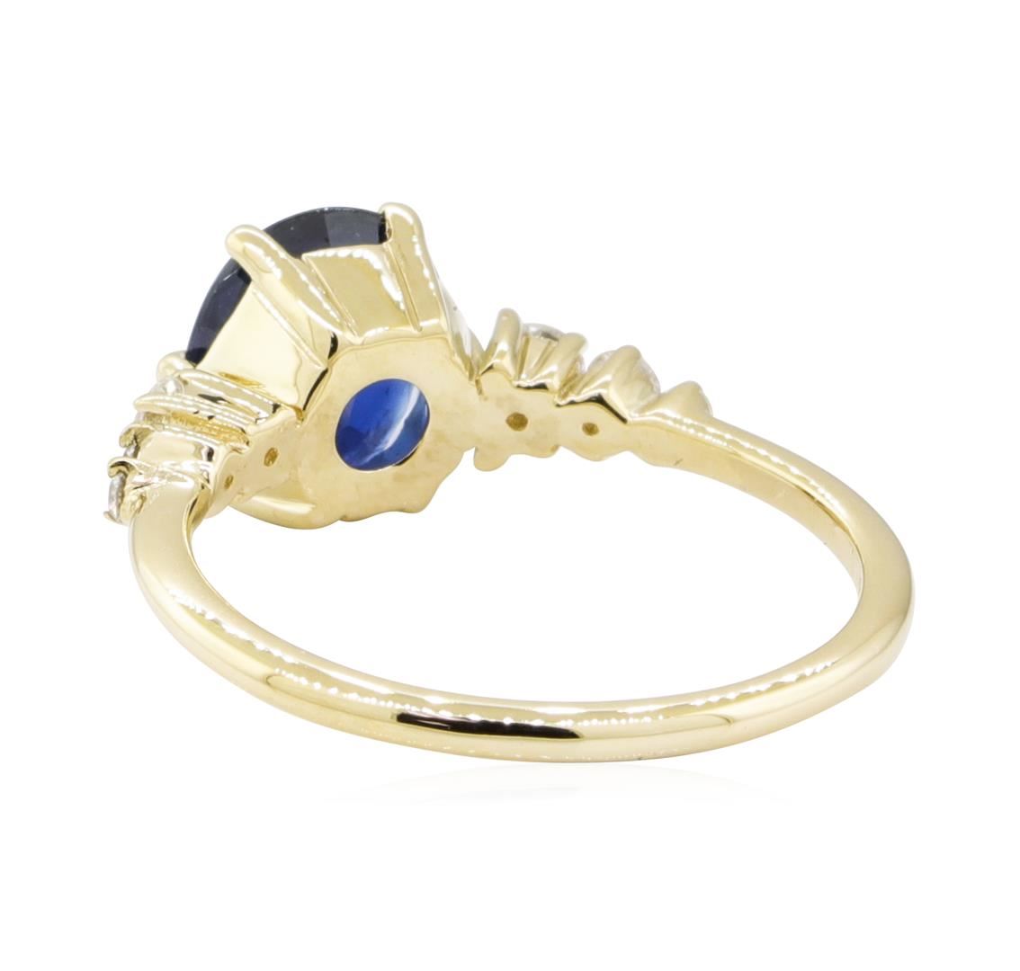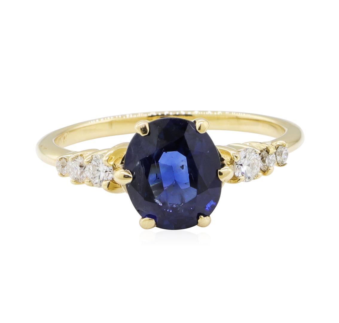 One ring featuring: 14KT yellow gold weighing 2.8 grams containing one oval sapphire weighing 1.78ct and diamonds weighing 0.25ctw.