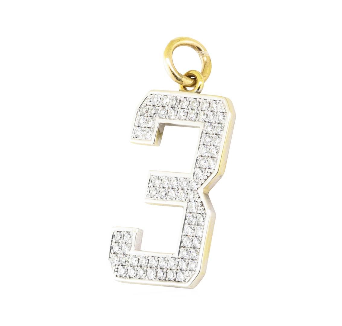 One "3" pendant measuring approximately 31.5mm in length featuring: 14KT yellow and white gold weighing 7.5 grams containing 68 diamonds weighing 2.04ctw.