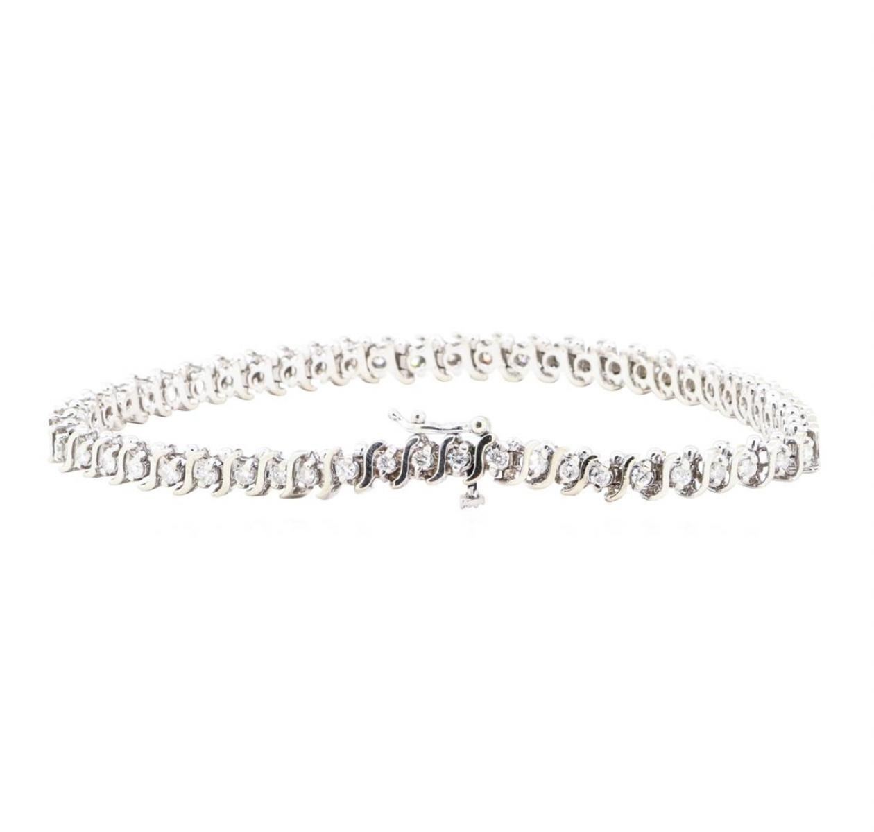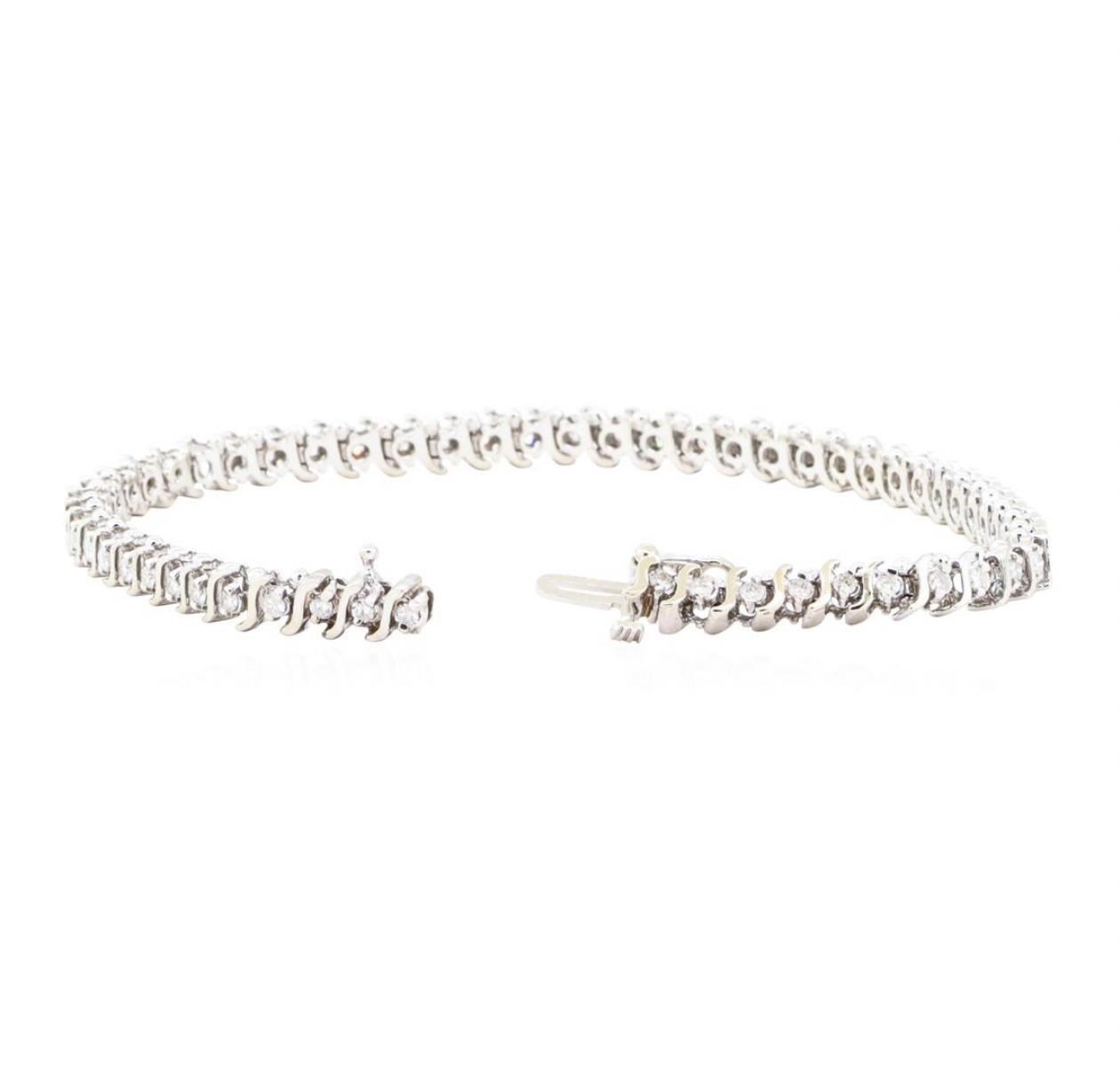 One electronically tested 14KT white gold lady's combination cast & assembled fashion straight line 'S' style tennis bracelet with a tongue clasp with foldover safety with a bright polish finish. The featured ladie's bracelet measures 8 inches in length. GAS Appraised.