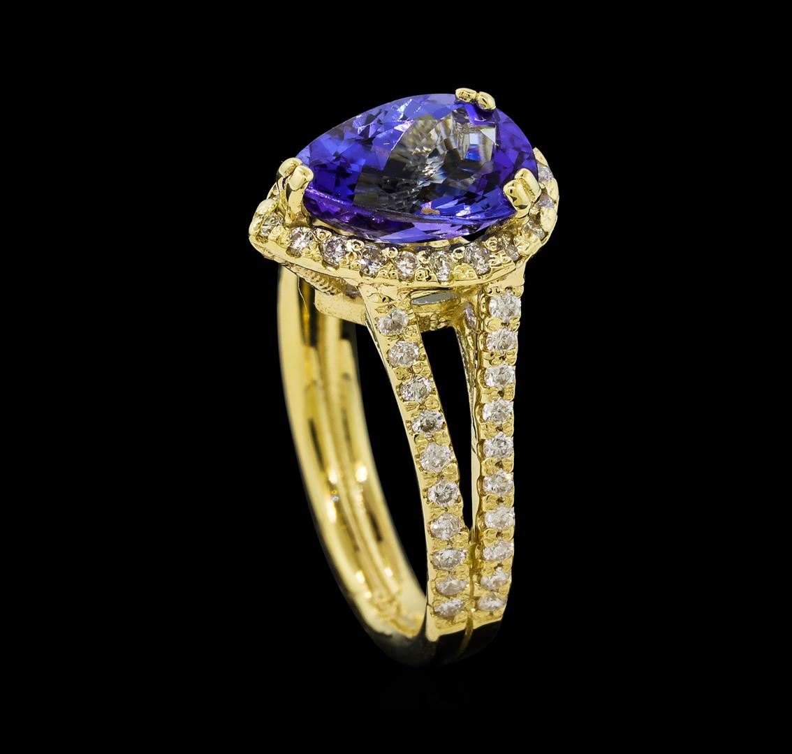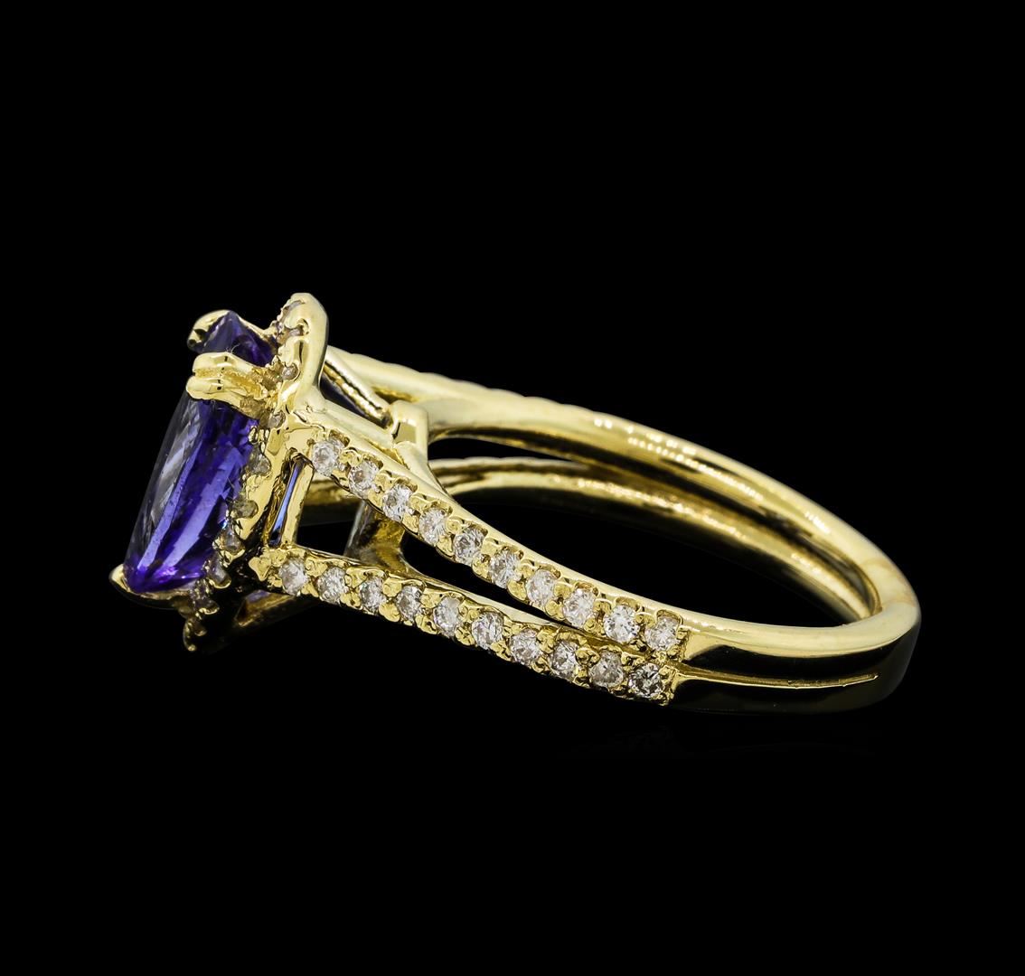 One Tanzanite and Diamond Ring including: 14KT Yellow Gold weighing a total of 4.30 grams, Tanzanite weighing a total of 2.05ct, and 60 Diamonds weighing a total of 0.50ctw.