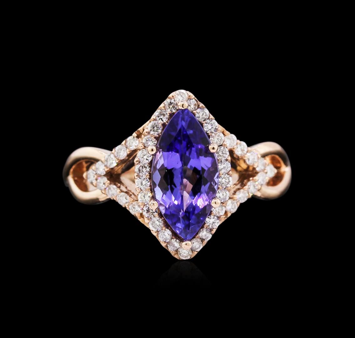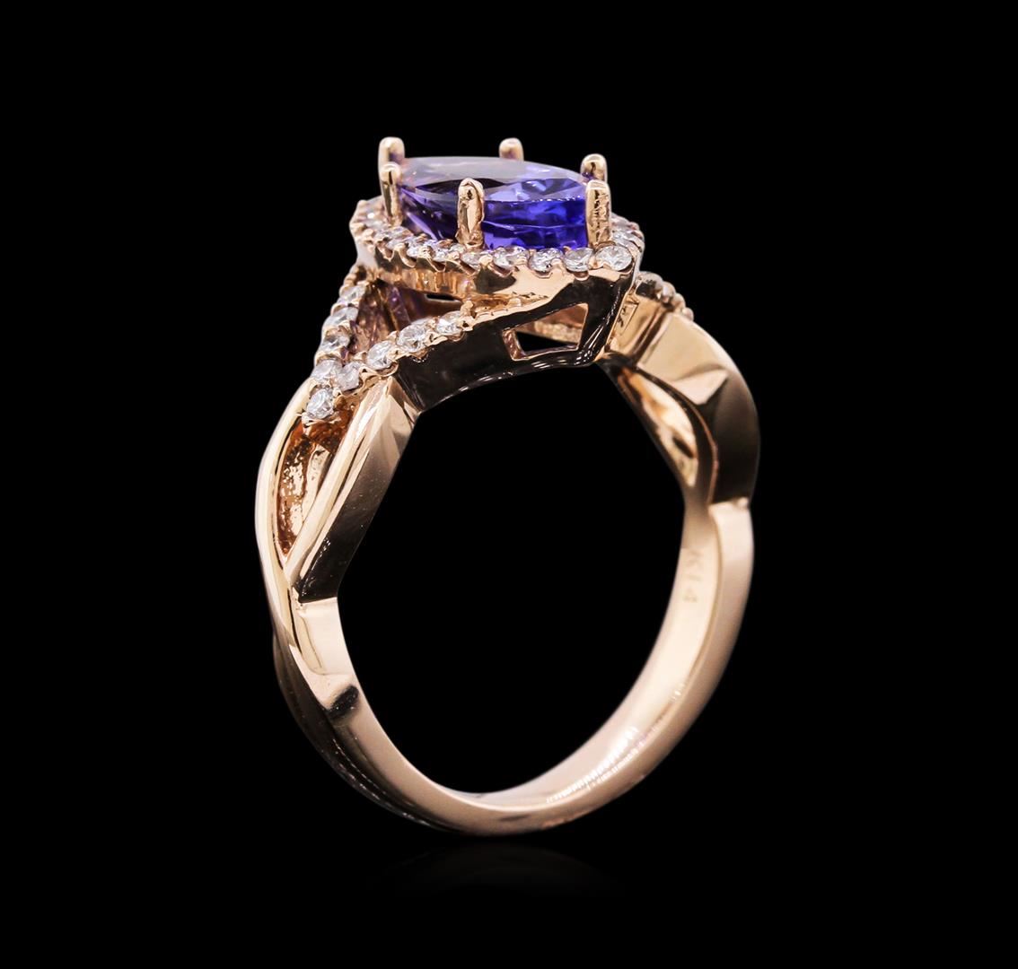 One ring featuring: 14KT rose gold weighing 5.34 grams containing one tanzanite with a total weight of 2.13ct and diamonds with a total weight of 0.41ct.