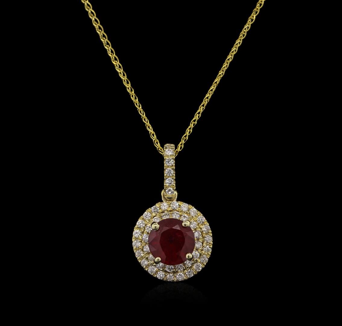 2.24 ctw Ruby and Diamond Pendant With Chain - 14KT Yellow Gold