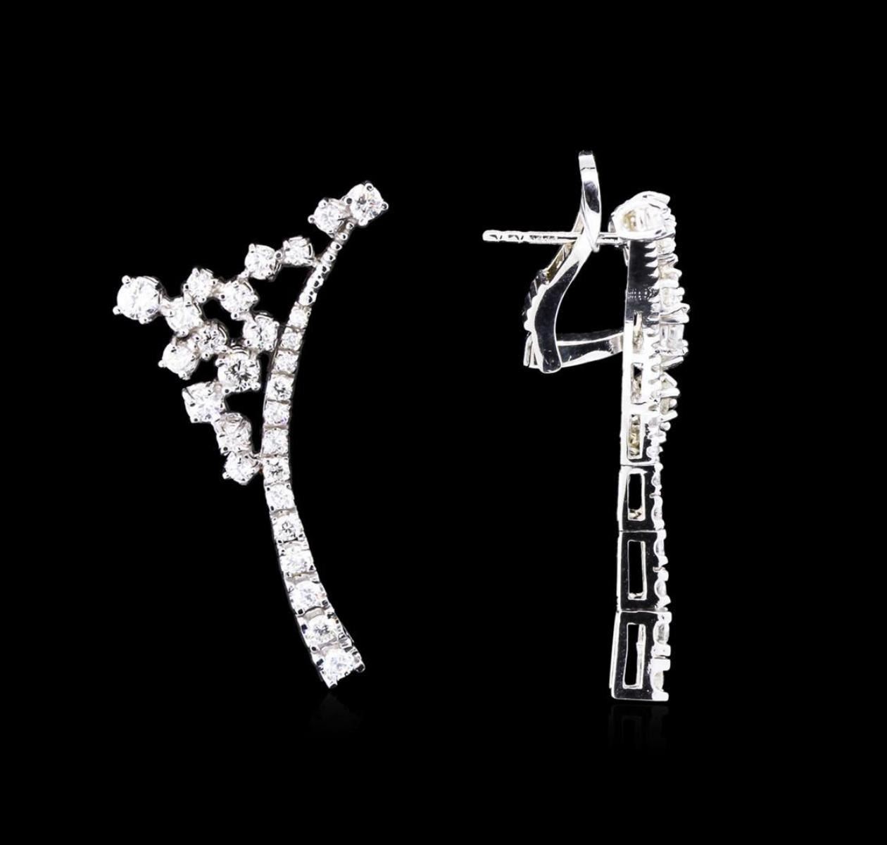 One pair electronically tested 14KT white gold lady's combination cast & assembled fashion earrings with Omega clip backs with posts with a bright polish finish. Identified with markings of "K14". Condition is new, good workmanship. Containing: Four prong set round brilliant cut diamonds, measuring 3.00 - 2.90 x 1.92mm (depth est.) approximate total weight of 4 Stones = 0.44ct. Graded in the setting. Clarity: SI-2 to I-1. Color: G - I. Cut Good Twelve prong set round brilliant cut diamonds, measuring 2.80 - 2.30 x 1.66mm (depth est.) approximate total weight of 12 Stones = 0.84ct. Graded in the setting. Clarity: SI-1 to I-1. Color: H - I. Cut Good Forty prong set round brilliant cut diamonds, measuring 2.10 - 1.50 x 1.17mm (depth est.) approximate total weight of 40 Stones = 1.00 ct. Graded in the setting. Clarity: SI-1 to I-1. Color: H - I. Cut Good. Total Weight of Diamonds 2.28ct. Total Weight of Earrings 8.90gm. GAS Appraised.