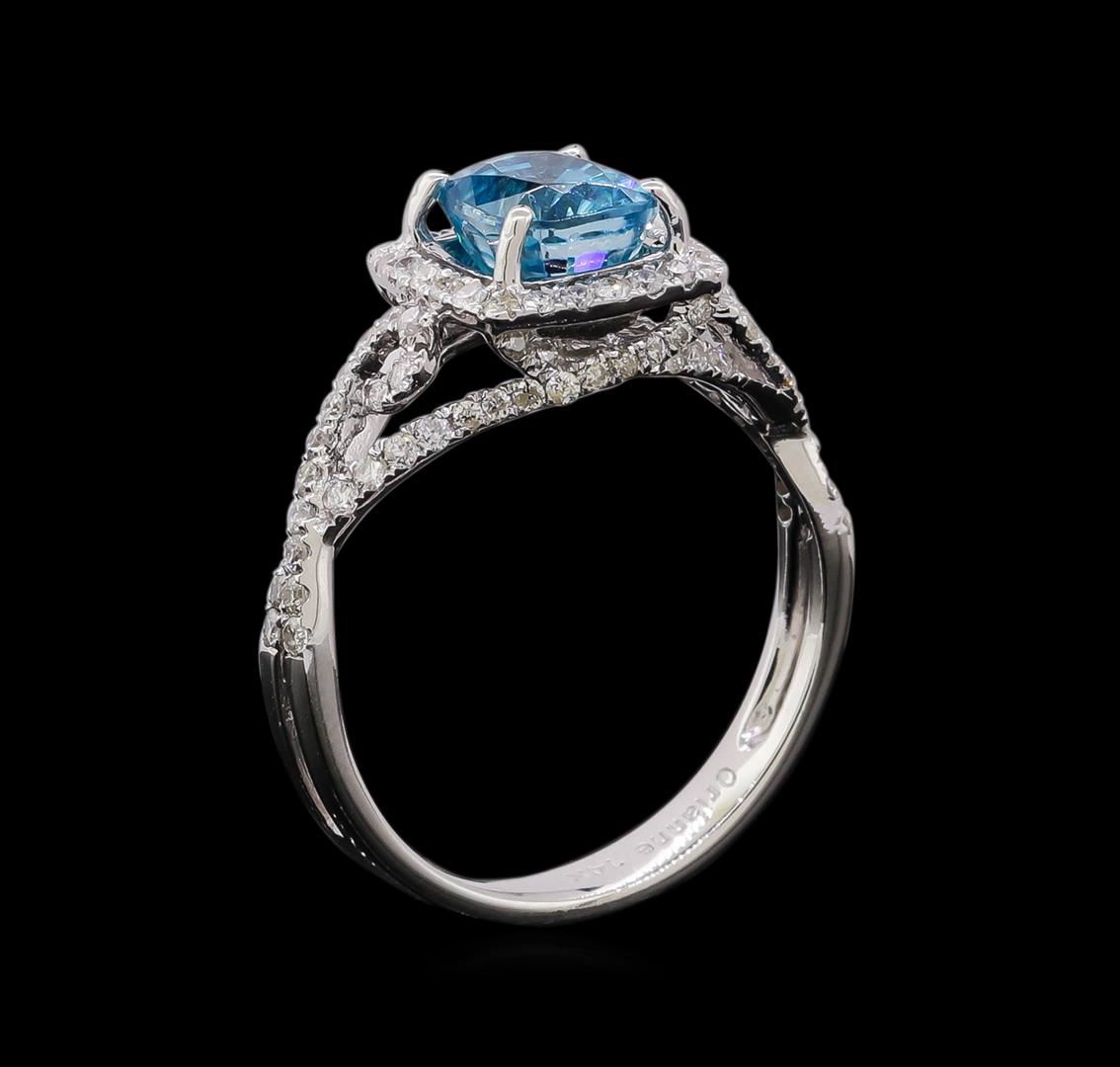 One ring : 14KT white gold weighing 2.8gm containing one blue zircon with a total weight of 2.31ct and diamonds weighing 0.55ctw.