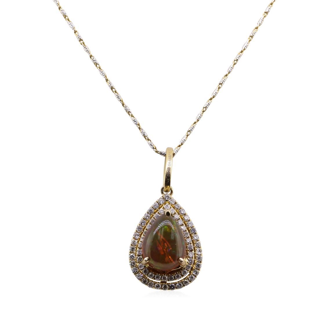 One 2.36ct Opal and Diamond Pendant With Chain - 14KT Yellow Gold. AIG certified. See Appraisal for more details. AIG Appraised.