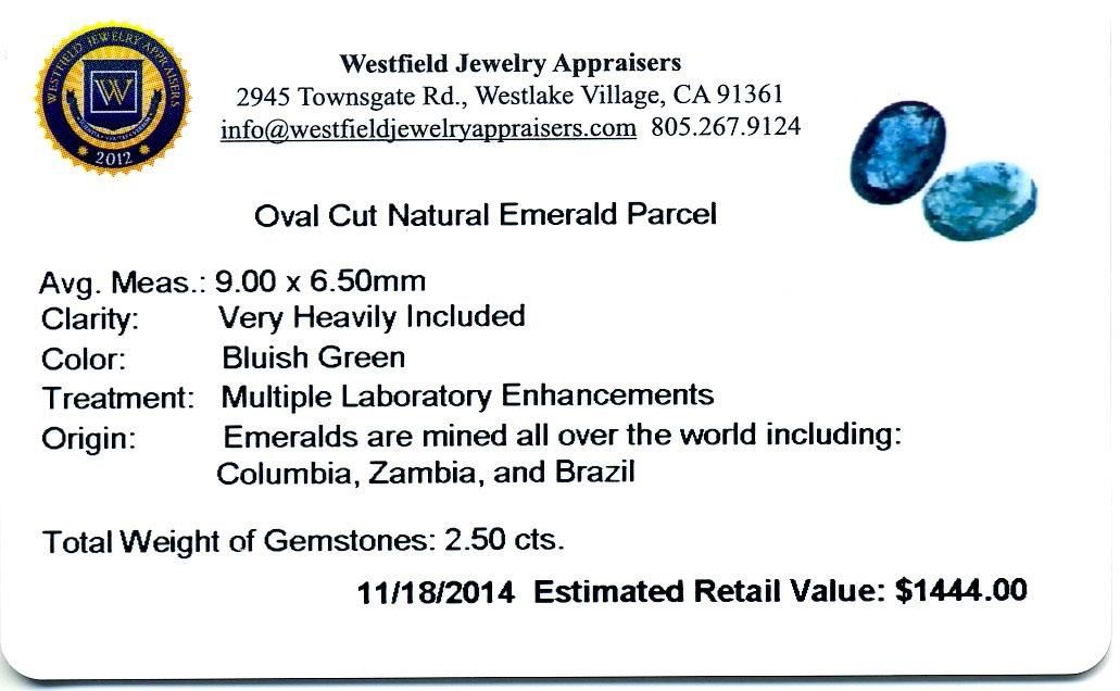 2.5cts. Oval Cut Natural Emerald Parcel Westfield Appraised.