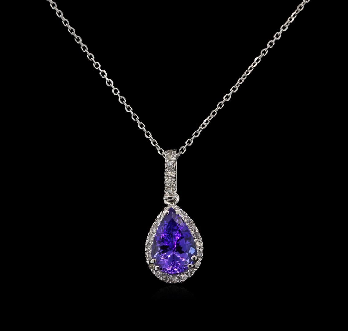 One pendant with chain featuring: 14KT white gold weighing 1.75 grams containing one tanzanite center stone with a total weight of 2.53ct and 26 diamonds with a total weight of 0.15ct.