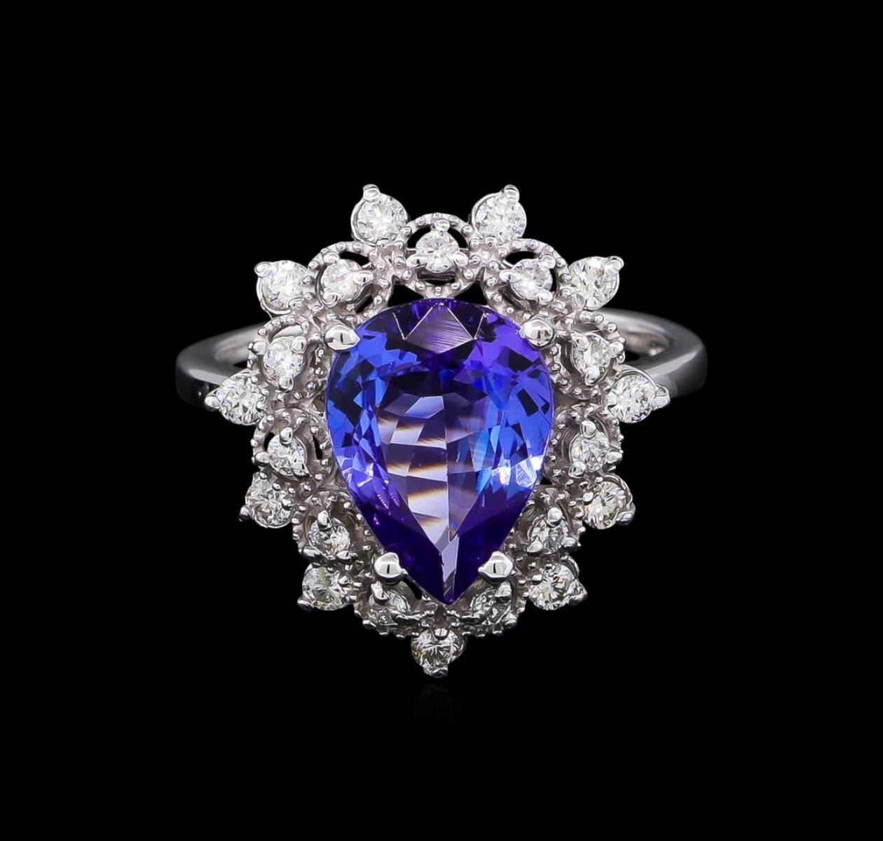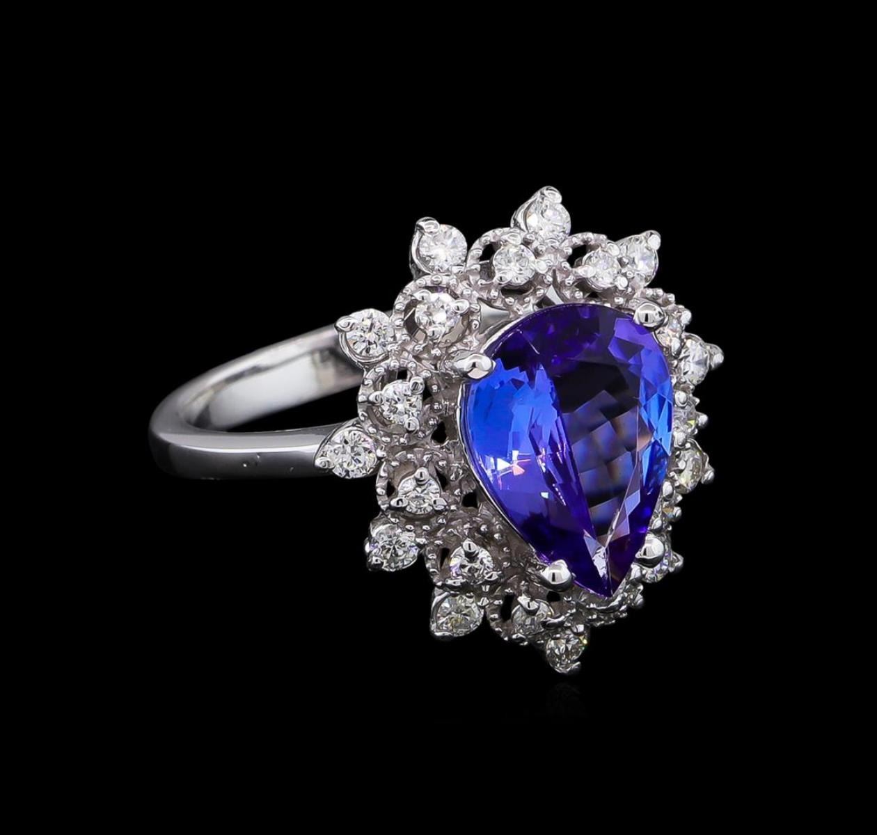 One ring featuring: 14KT white gold weighing 4.62 grams containing one tanzanite with a total weight of 2.58ct and side diamonds with a total weight of 0.44ct.