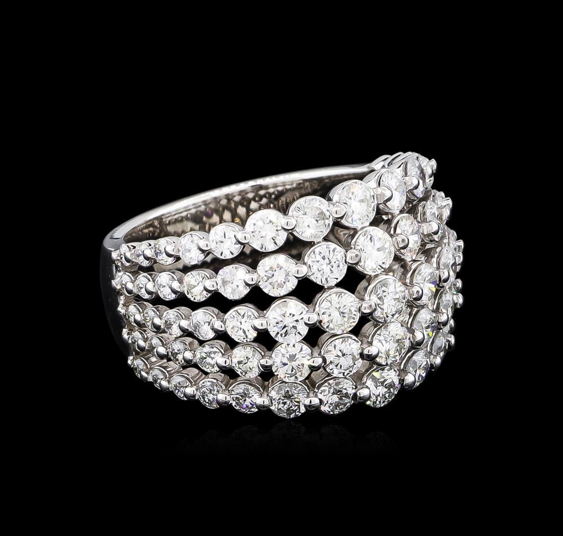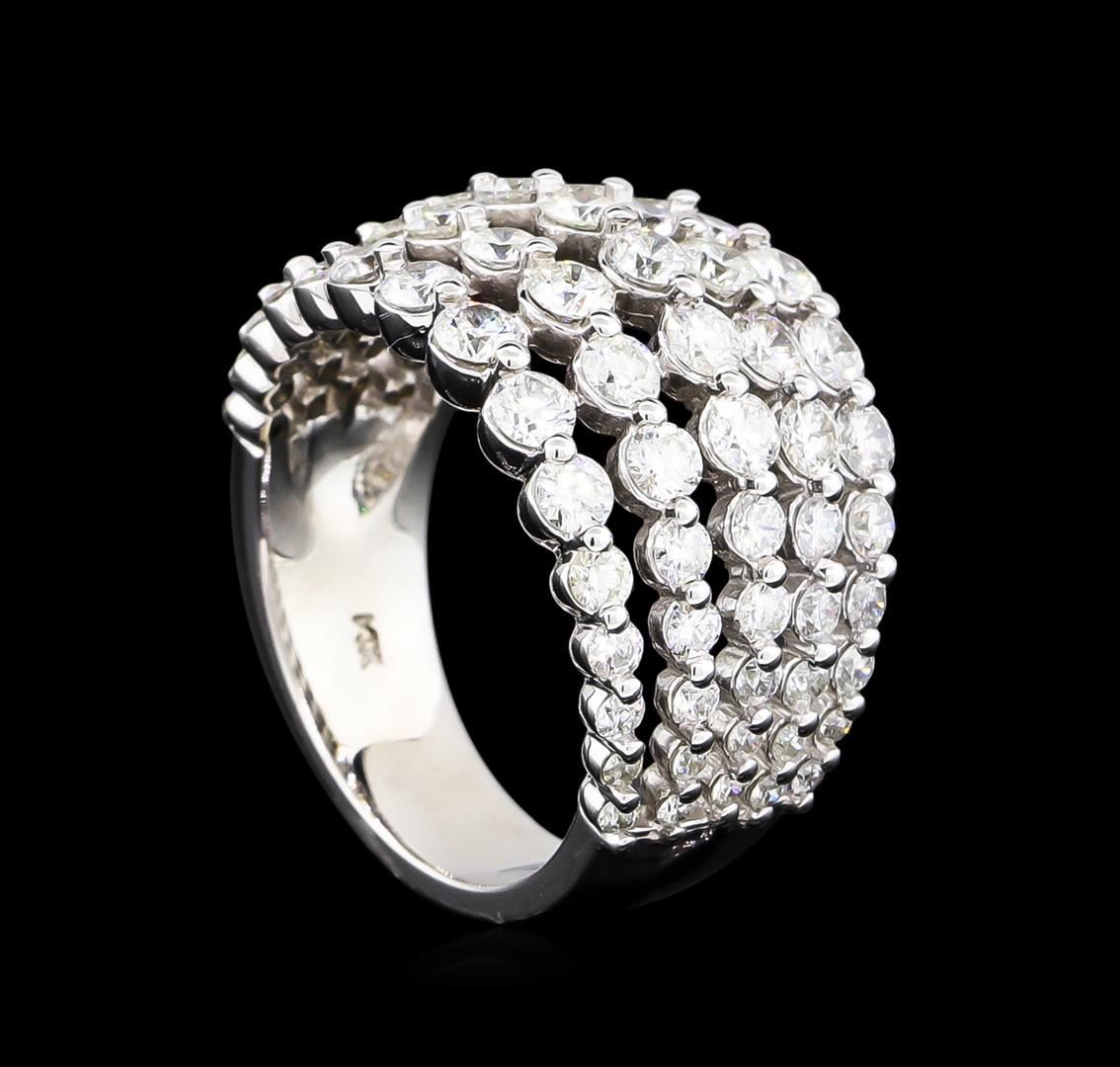 One electronically tested 14KT white gold lady's cast fashion ring with a five row split shank with a bright polish finish. The featured lady's ring has a wide domed band motif measuring 14.60 millimeters wide and a shank measuring 5.48 millimeters wide. Identified with markings of "14K". Condition is new, good workmanship. Containing: Twenty-Five prong set round brilliant cut diamonds, measuring 2.80 - 2.50 x 1.59mm (depth est.) approximate total weight of 25 Stones = 1.60ct. Graded in the setting. Clarity: SI-1 to I-1. Color: H - I. Cut Good Thirty prong set round brilliant cut diamonds, measuring 2.20 - 1.60 x 1.14mm (depth est.) approximate total weight of 30 Stones = 0.78ct. Graded in the setting. Clarity: SI-1 to I-1. Color: H - I. Cut Good Twenty prong set round brilliant cut diamonds, measuring 1.50 - 1.30 x 0.87mm (depth est.) approximate total weight of 20 Stones = 0.23ct. Graded in the setting. Clarity: SI-1 to I-1. Color: H - I. Cut Good. Total Weight of Diamonds 2.61ct. Total Weight of Ring 8.50gm. GAS Appraised.