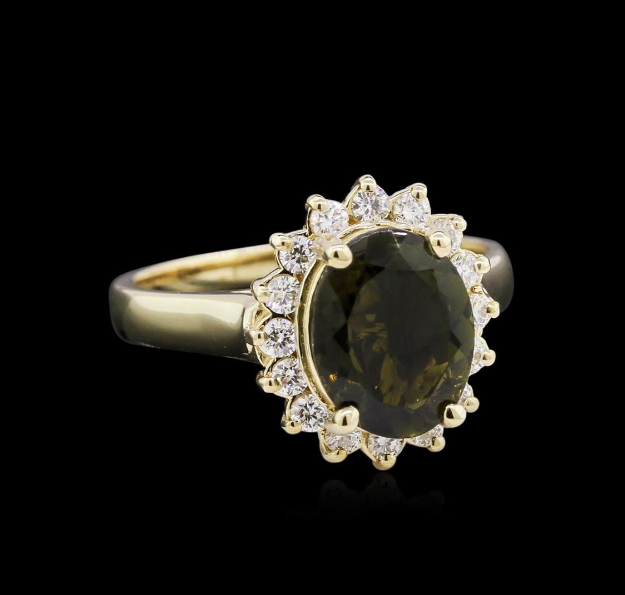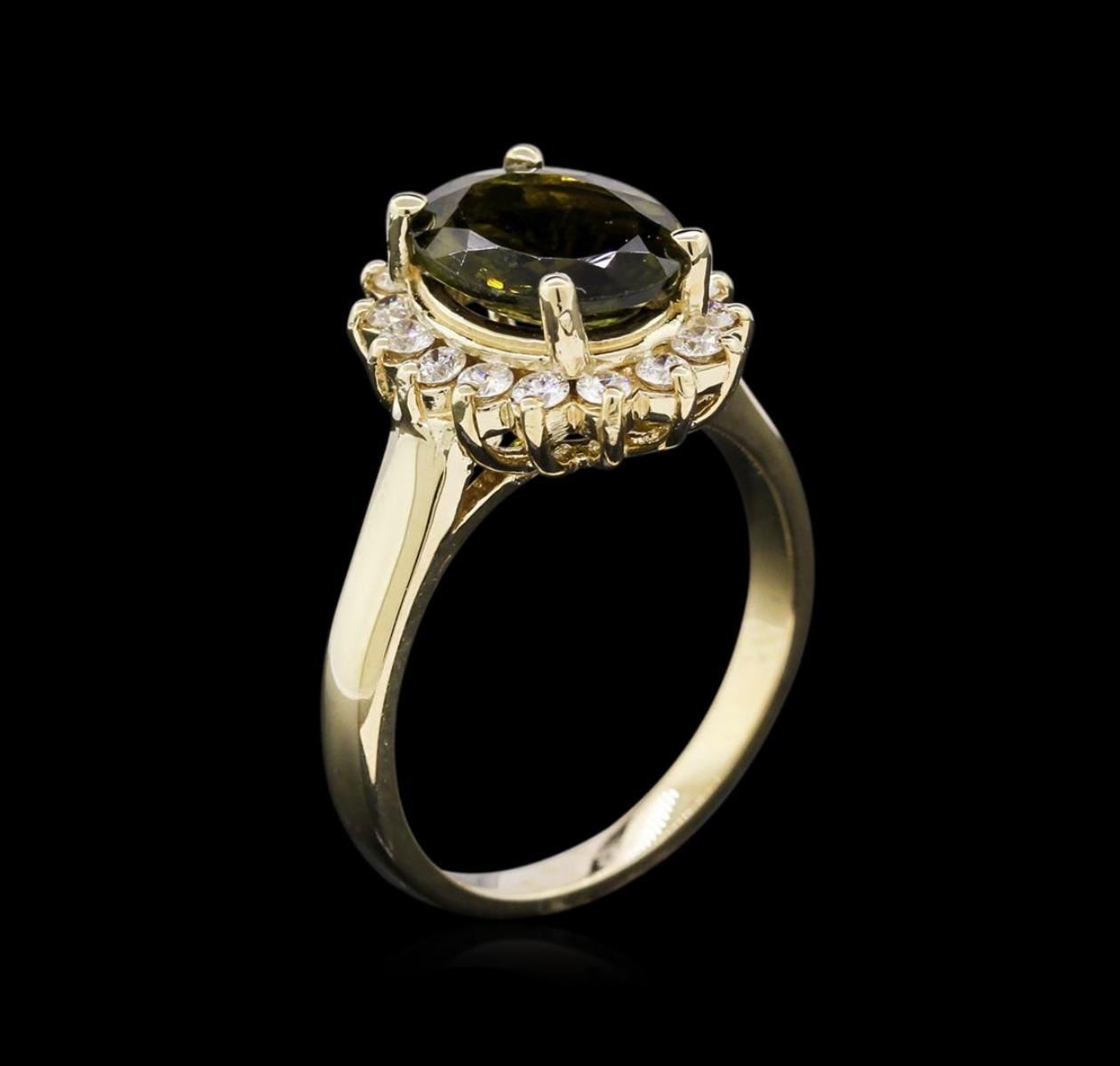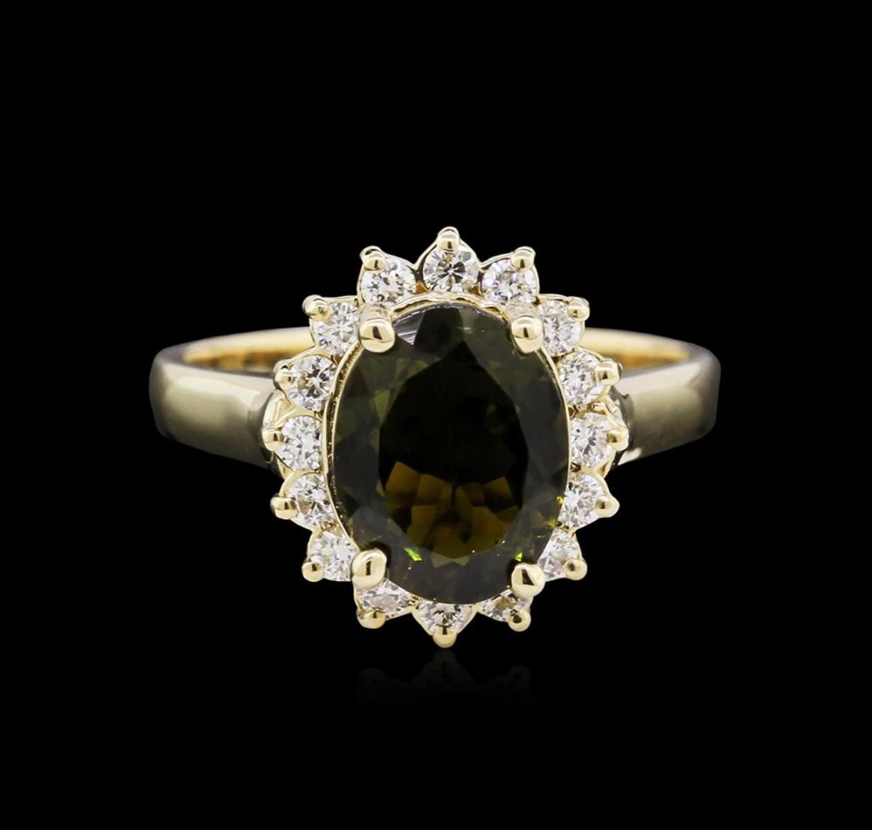 One ring featuring: 14KT yellow gold weighing 4.79 grams containing one green tourmaline with a total weight of 2.63ct and diamonds with a total weight of 0.40 ct.
