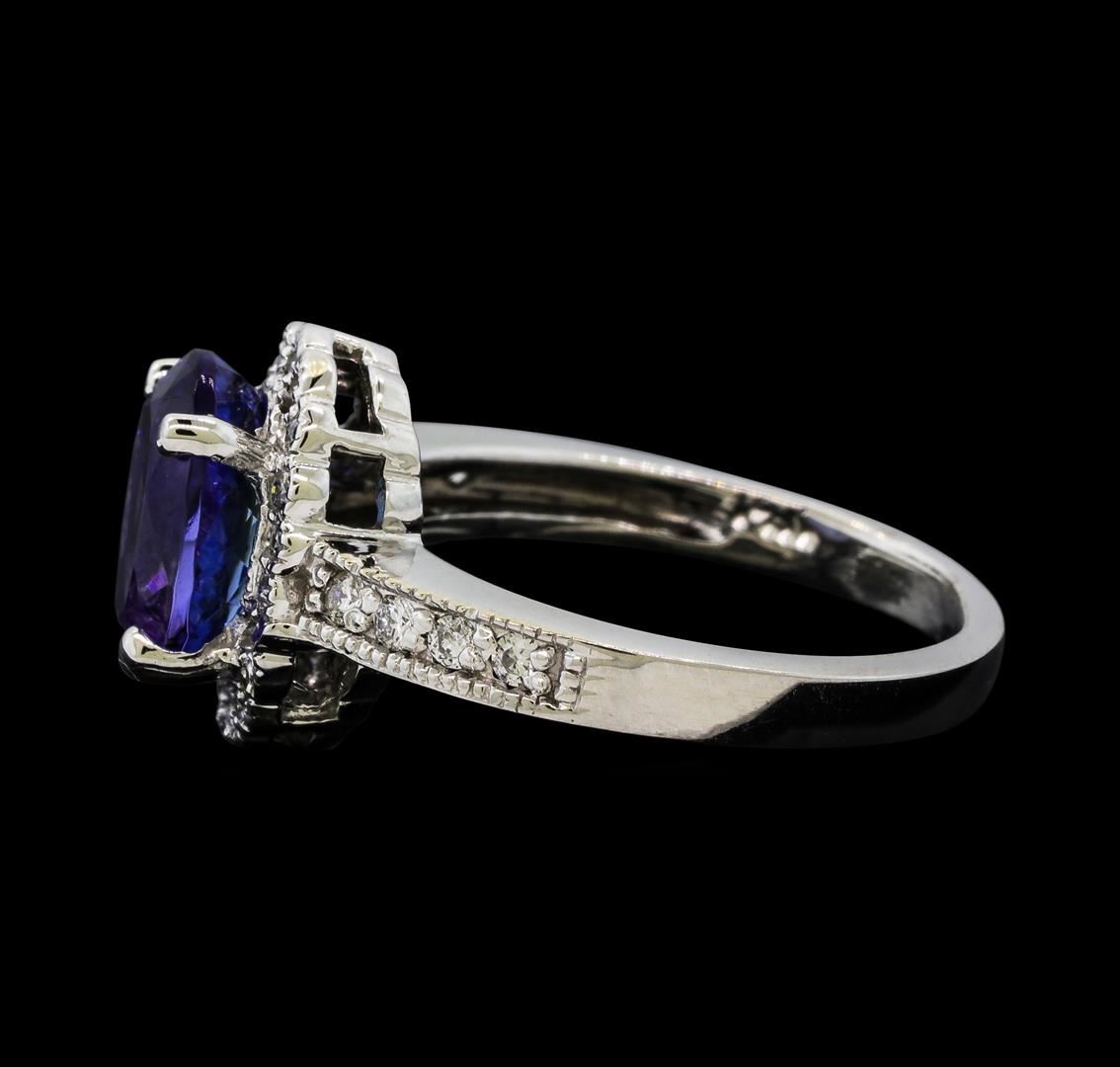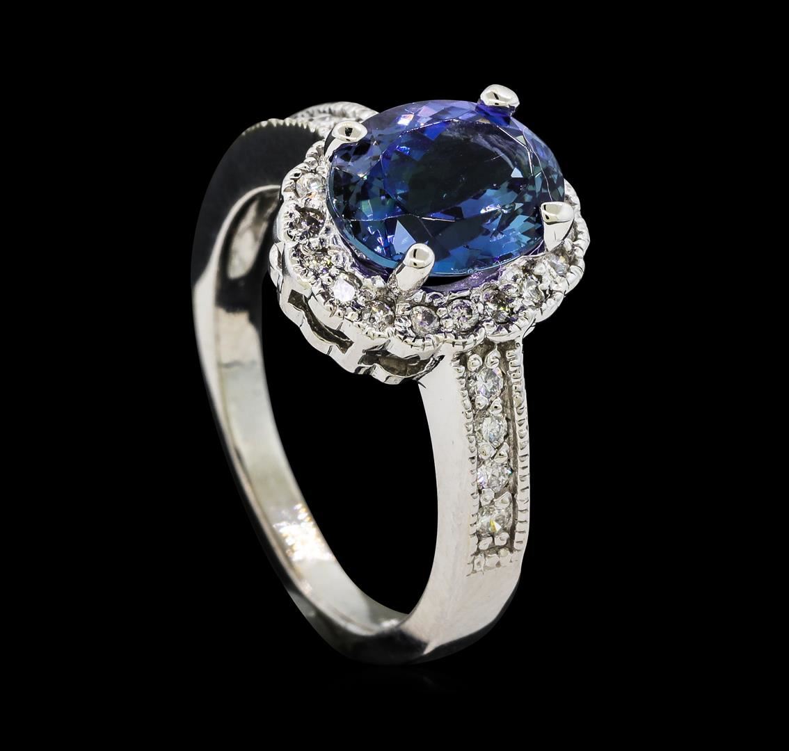 One Tanzanite and Diamond Ring including: 14KT White Gold weighing a total of 4.63 grams, Tanzanite weighing a total of 2.65ct, and 26 Diamonds weighing a total of 0.28ctw.