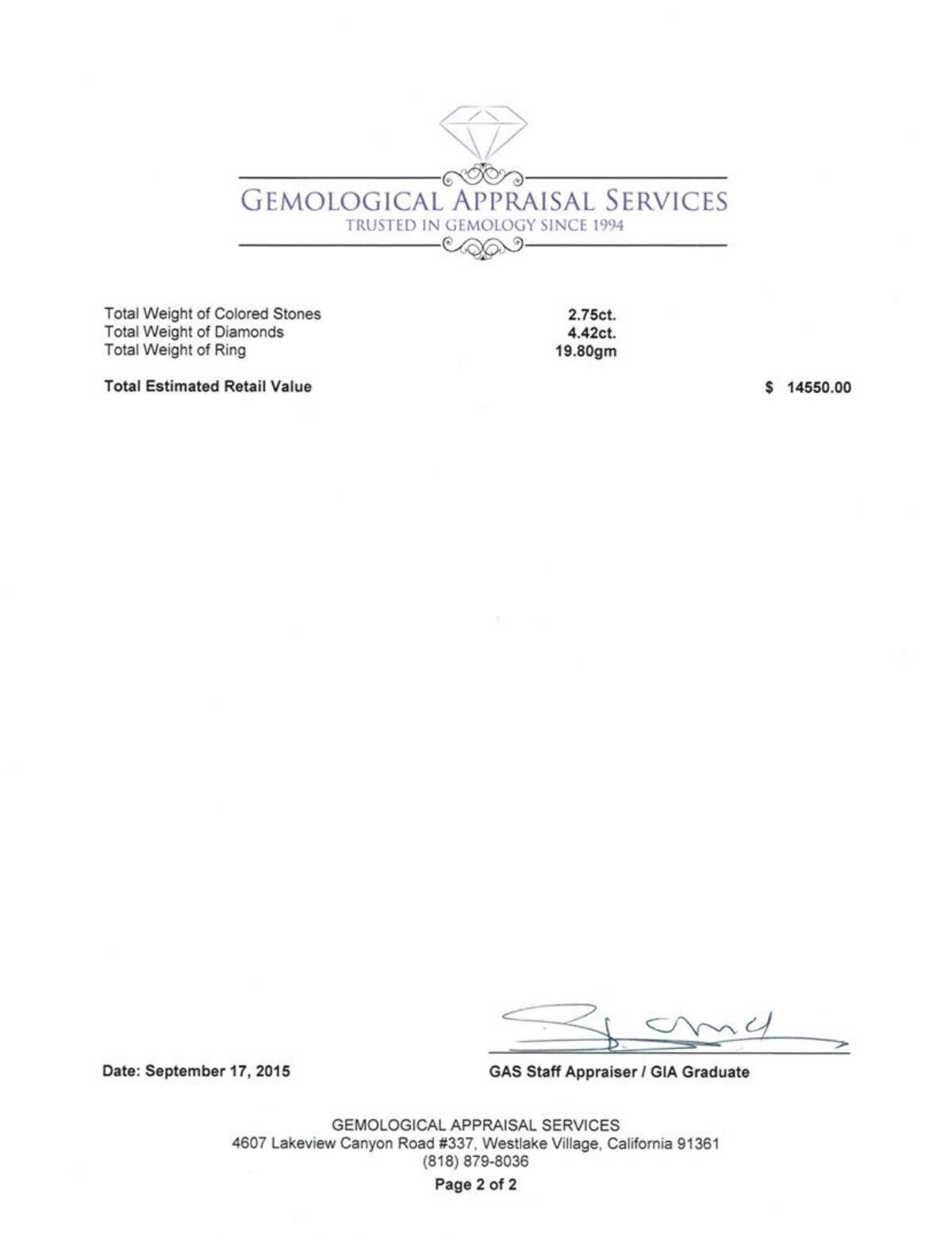 Regarding Appraised Jewelry, Watches and Loose Stones - SAA sends most jewelry, watches, accessories and loose stones out to a third-party for appraisals. All such lots are sold AS IS and may have been worn, been previously repaired, altered, customized (including having been modified with after-market stones or had the bezel changed in its entirety on certain jewelry or watches), or been embellished. For purposes of our actions, the terms custom, modified, or after-market may be used interchangeably. Such wear, repair or changes may display varying levels of evidence. The bidder hereby acknowledges that the absence of any reference to the condition of a lot does not imply the absence of wear, repairs, customization, or defects. While SAA makes every effort to call to the attention of bidders the use of after-market parts in jewelry and watches sold, the use of such parts or stones shall not constitute a warranty or representation that the items are original in their entirety. These modifications, customizations, and alterations may impair the ability of the original manufacturer to repair such item or certify the item as authentic All descriptions and statements related to such lots, including measurement, authorship, source or origin, or other aspects are qualified opines and do not constitute a warranty or representation, and are provided for identification purposes only. Not all Jewelry, watches or loose stones are appraised, and the appraisals are provided for bidders only in certain instances at the discretion of SAA. Our appraisals are conducted by independent third-party appraisal firms. Such firms may be certified GIA Gemologists or have education in the industry or alternative certifications. Appraisals should be used for verification of gemstone and/or metal weight, size, and grade only, not actual value for resale or insurance purposes. Appraisal value should be not considered for actual value, as price varies greatly from retail locations and other merchants in different geographic locations. All Items auctioned by SAA should not be purchased with a view or expectation toward resale for appraisal price given, or to make a profit. The ultimate value for which an item can be resold may vary drastically from the appraisals listed by SAA. All dimensions and weights of such lots are approximate and are consistent with standards and practices in the industry. Condition reports are provided as a service to prospective bidders. Bidders should note that such descriptions are not warranties and that watches may need general service, change of battery or further repair work for which the buyer is solely responsible. Certain watch bands from protected species of animals (i.e. alligator, crocodile) and items made of ivory and tortoise may be subject to restrictions in certain countries.