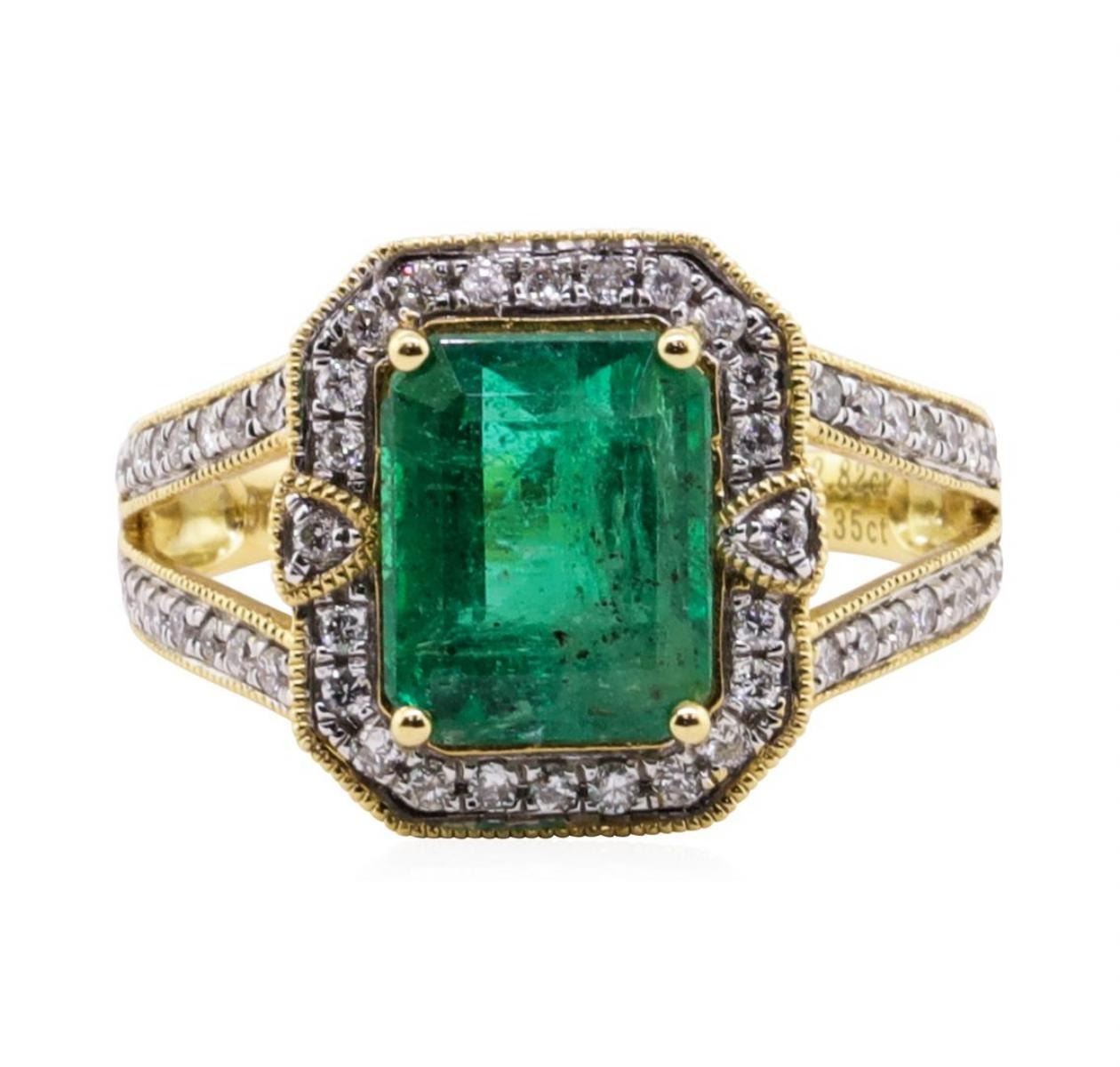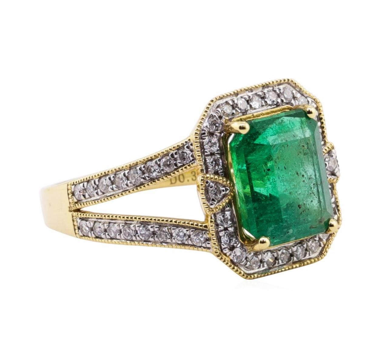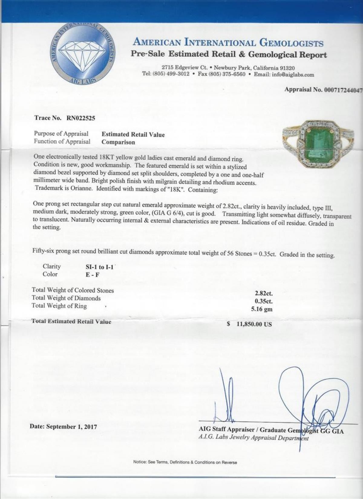 One 2.82ct Emerald and Diamond Ring - 18KT Yellow Gold. AIG certified. See Appraisal for more details. AIG Appraised.
