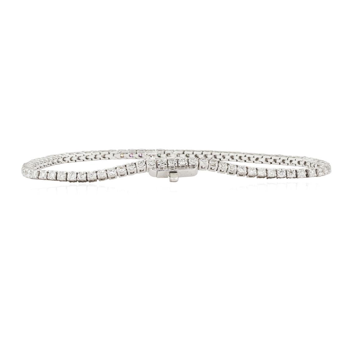 One electronically tested 14KT white gold lady's combination cast & assembled fashion straight line tennis bracelet with a tongue clasp with fold-under safety with a bright polish finish. The featured lady's tennis bracelet measures 7.00 inches in length. Identified with markings of '14K'. Condition is new, good workmanship. Containing: Seventy-Seven prong set round brilliant cut diamonds, measuring 2.20 - 2.10 x 1.32mm (depth est.) approximate total weight of 77 Stones = 2.85ct. Graded in the setting. Color G - H Clarity SI-1 to SI-2 Cut Very Good. Total Weight of Diamonds 2.85ct.. Total Weight of Tennis Bracelet 7.90gm GAS Appraised at $9120.00. GAS Appraised.