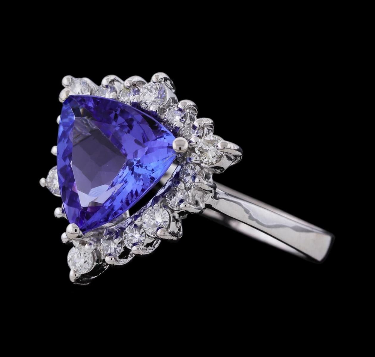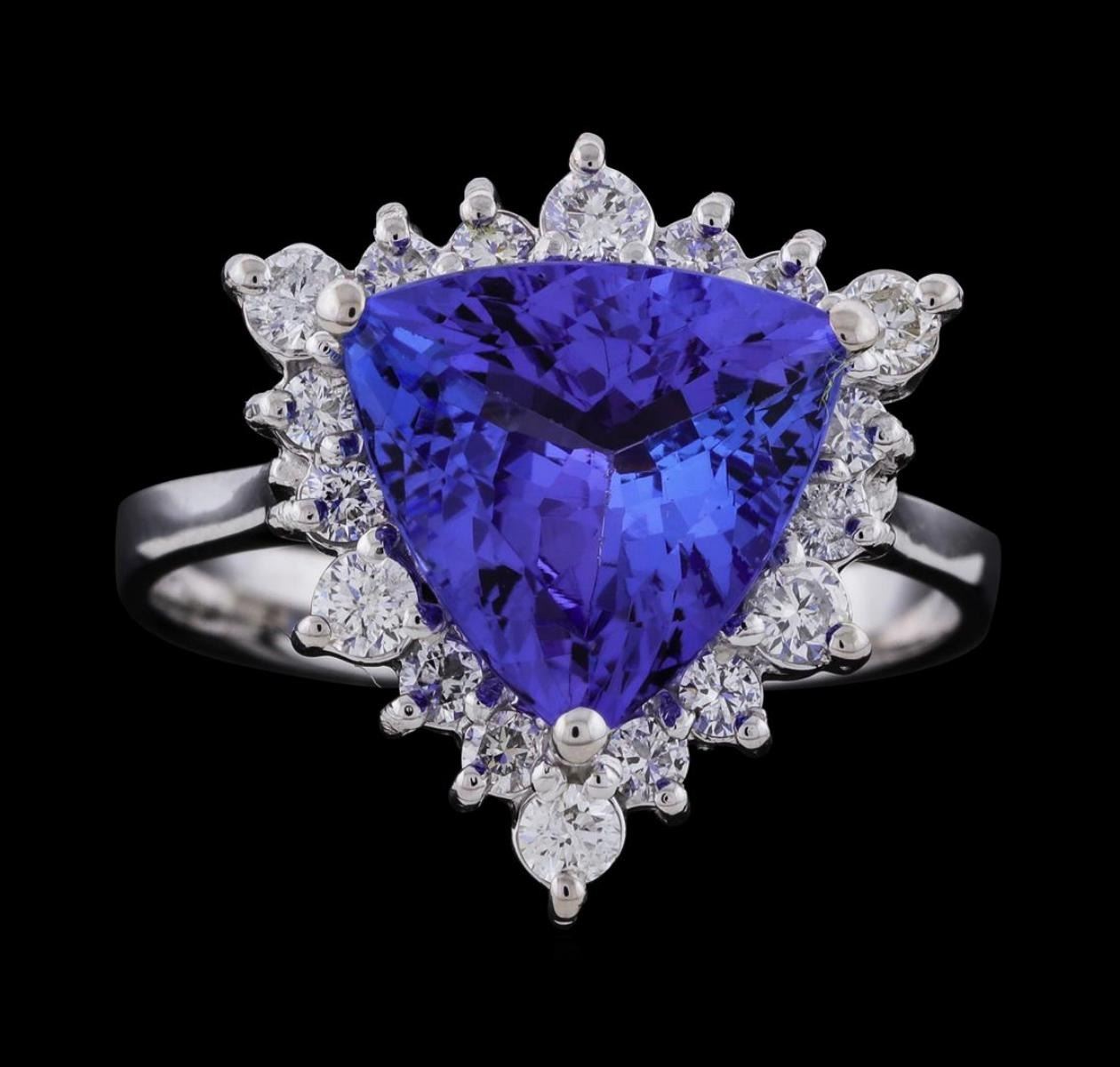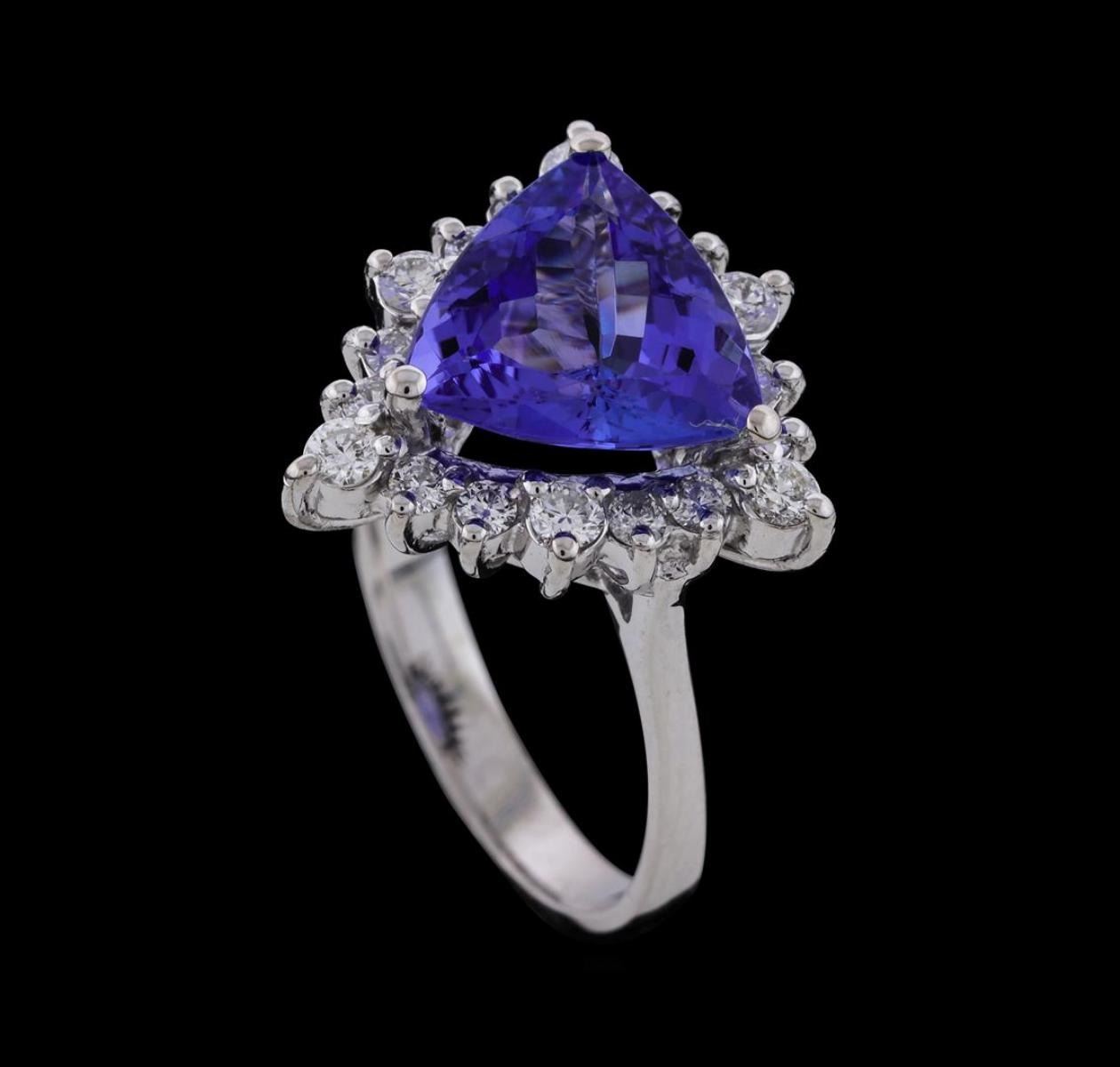 One ring : 14KT white gold weighing 3.90gm featuring tanzanite with a total weight of 2.85ct and diamonds weighing 0.43ctw.