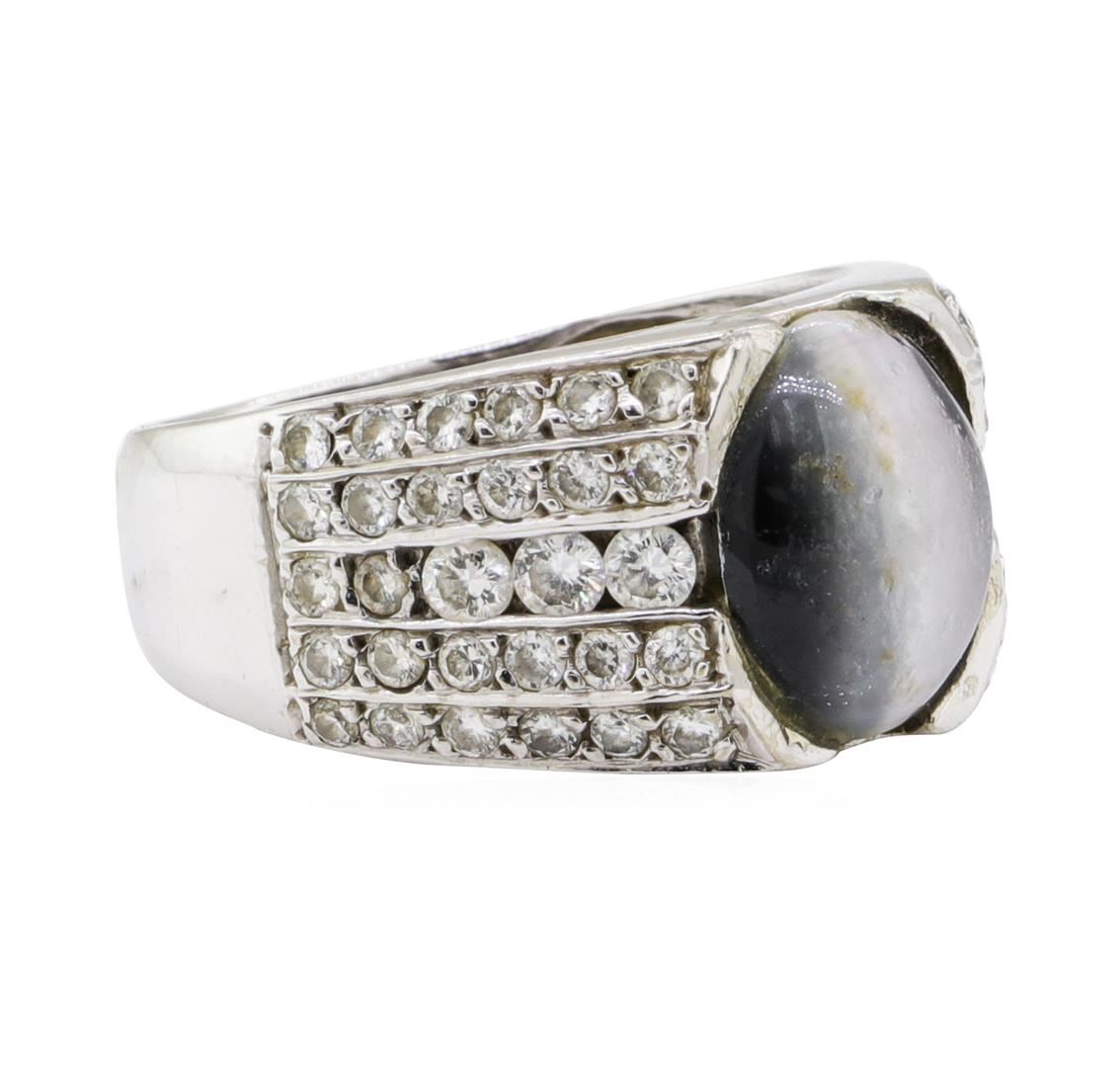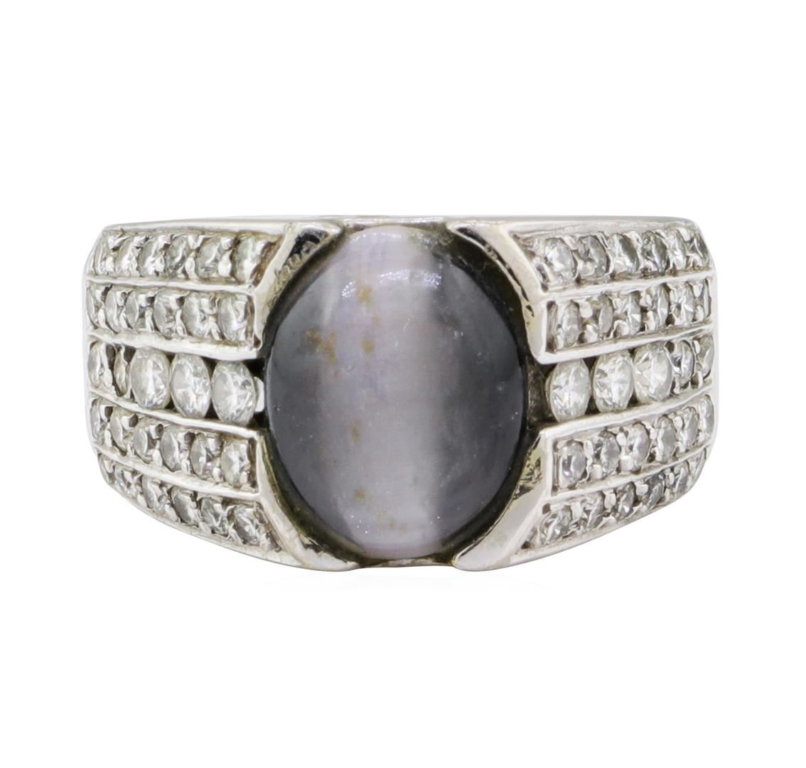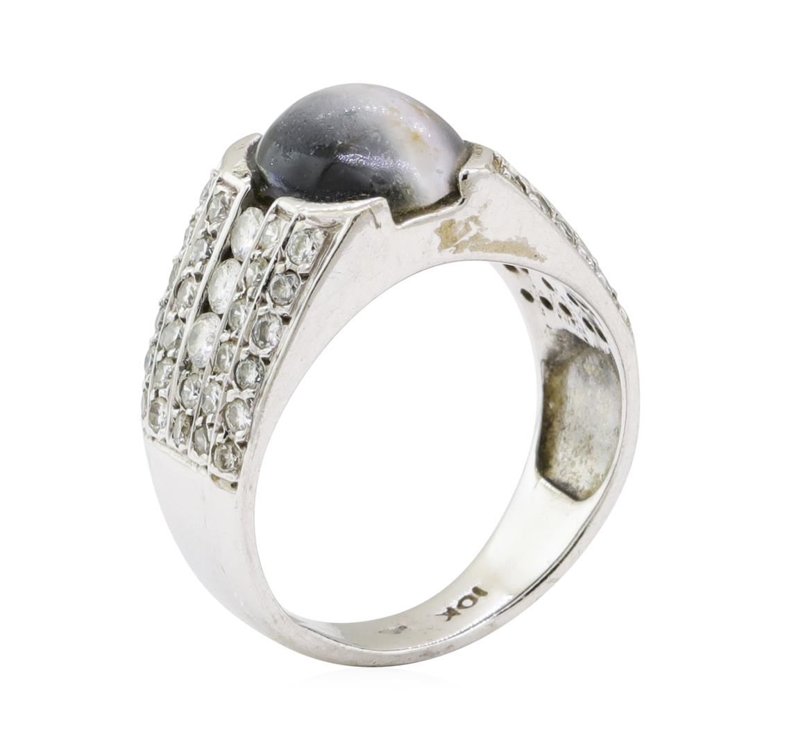 One ring featuring: 10KT white gold weighing 5.1 grams containing one oval cabochon dyed cat's eye weighing 2.00ct and diamonds weighing 0.90ctw.