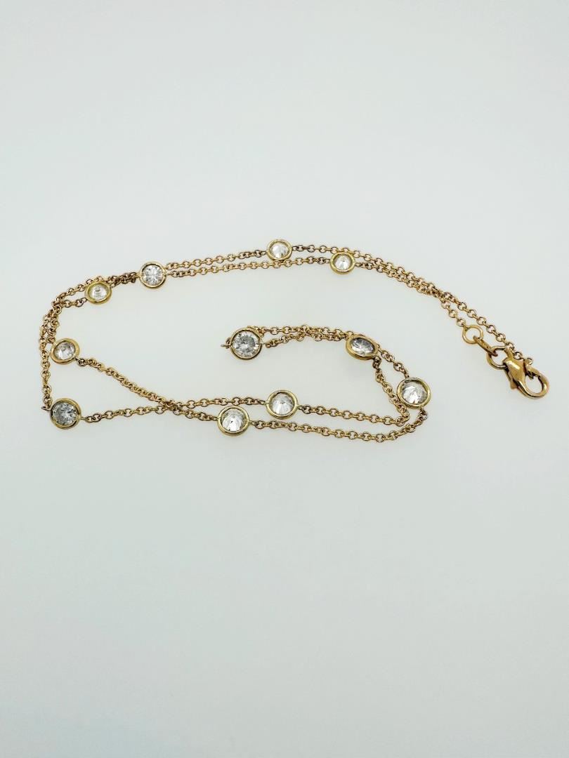 This exquisite 2.95 carat total weight "Diamonds by the Yard" necklace showcases a stunning series of round brilliant-cut diamonds, each delicately bezel-set along a sleek 18K yellow gold chain. The rich hue of the 18K yellow gold provides a warm contrast, enhancing the fire and brilliance of the diamonds. With its classic and refined design, this necklace offers versatility for both everyday wear and elegant occasions. Whether worn alone or layered, it radiates timeless elegance and adds a touch of luxury to any jewelry collection.