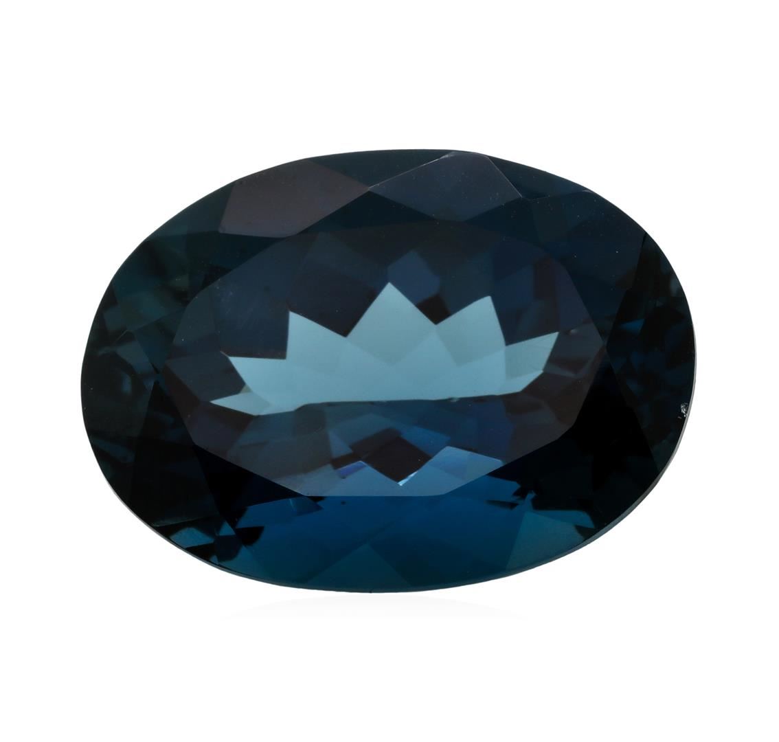 One natural oval cut london blue topaz with an exact weight of 20.54ct., clarity is eye clean, greenish blue, medium dark. Gemological Appraisals Services estimates the retail value at $410.8 GAS Appraised.