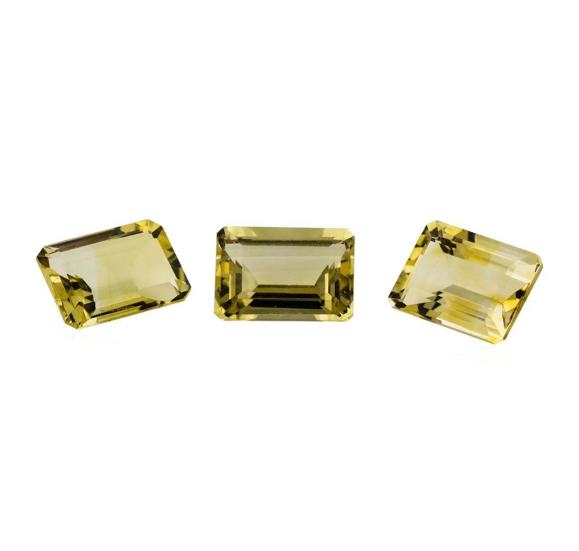 One natural emerald cut citrine quartz parcel of three with an exact weight of 20.84ctw., clarity is eye clean, slightly yellowish orange, medium to medium light. Gemological Appraisals Services estimates the retail value at $625.2 GAS Appraised.