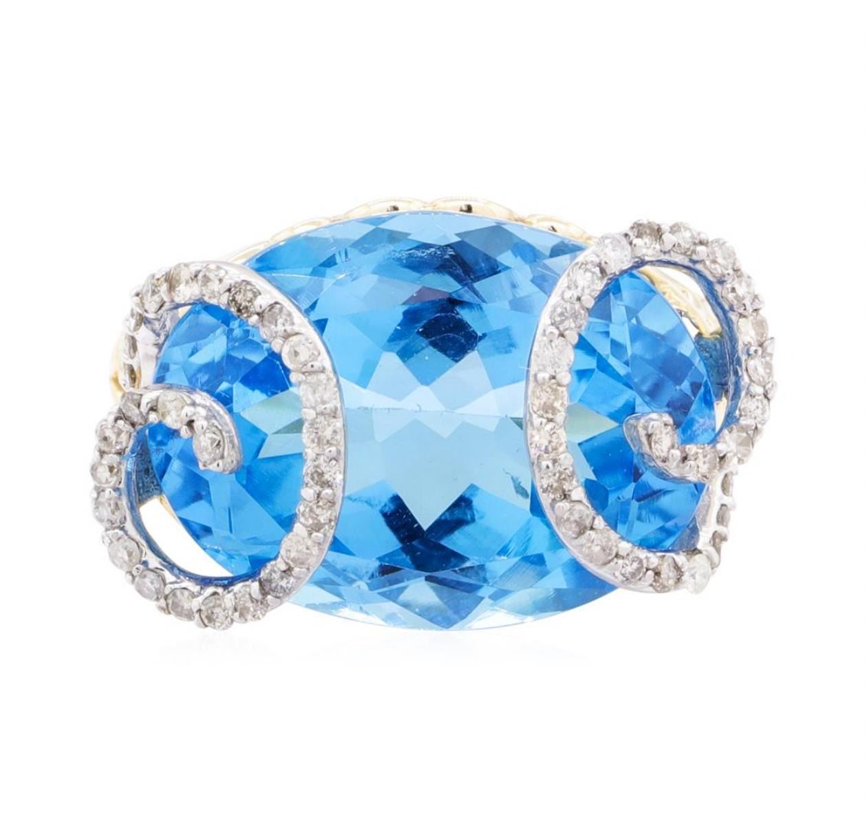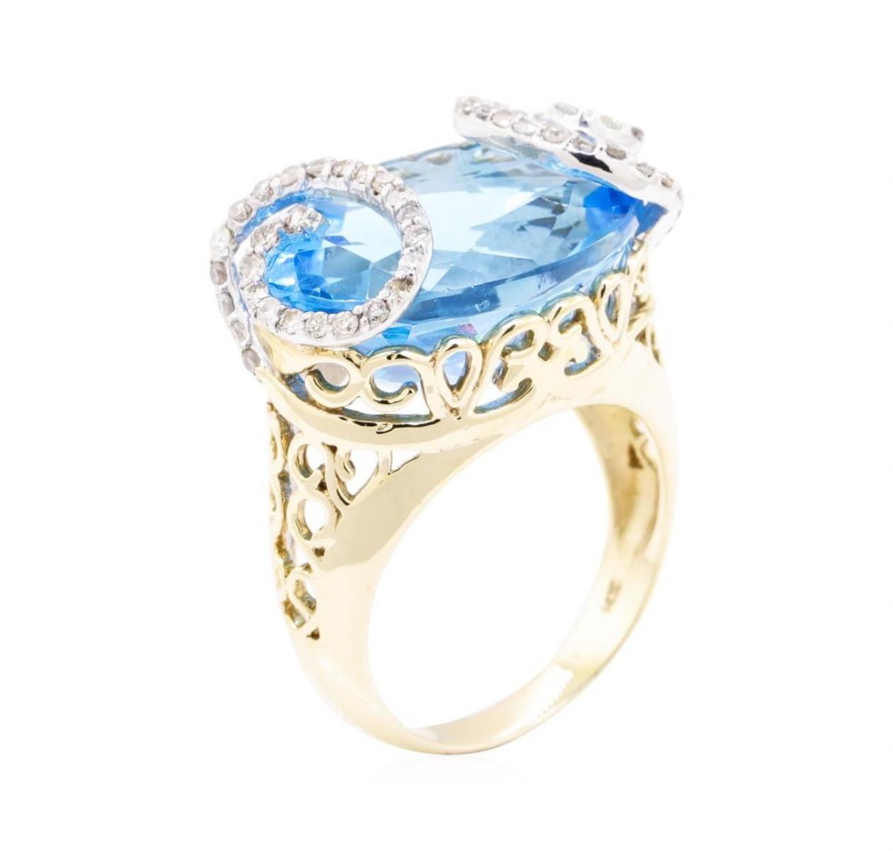 20.85 ctw Blue Topaz And Diamond Ring - 14KT Yellow Gold