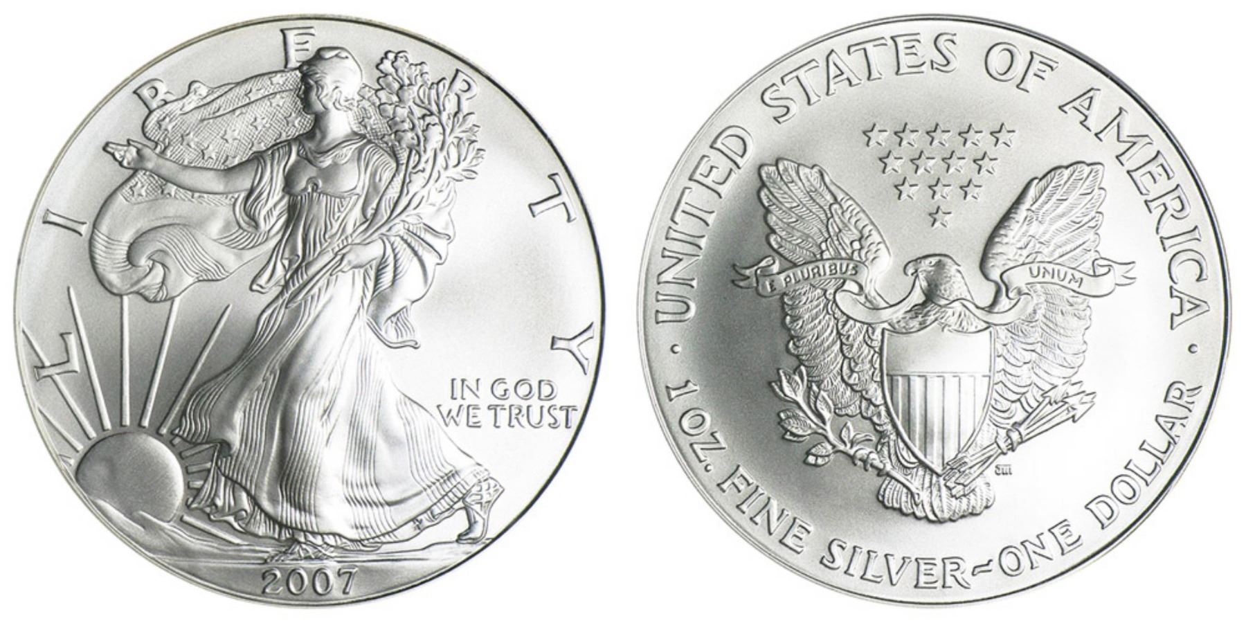 One 2007 American Silver Eagle .999 Fine Silver Dollar Coin.