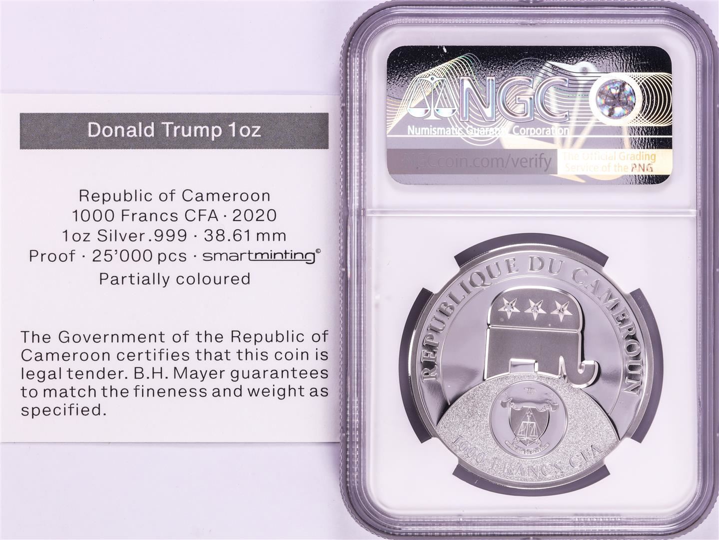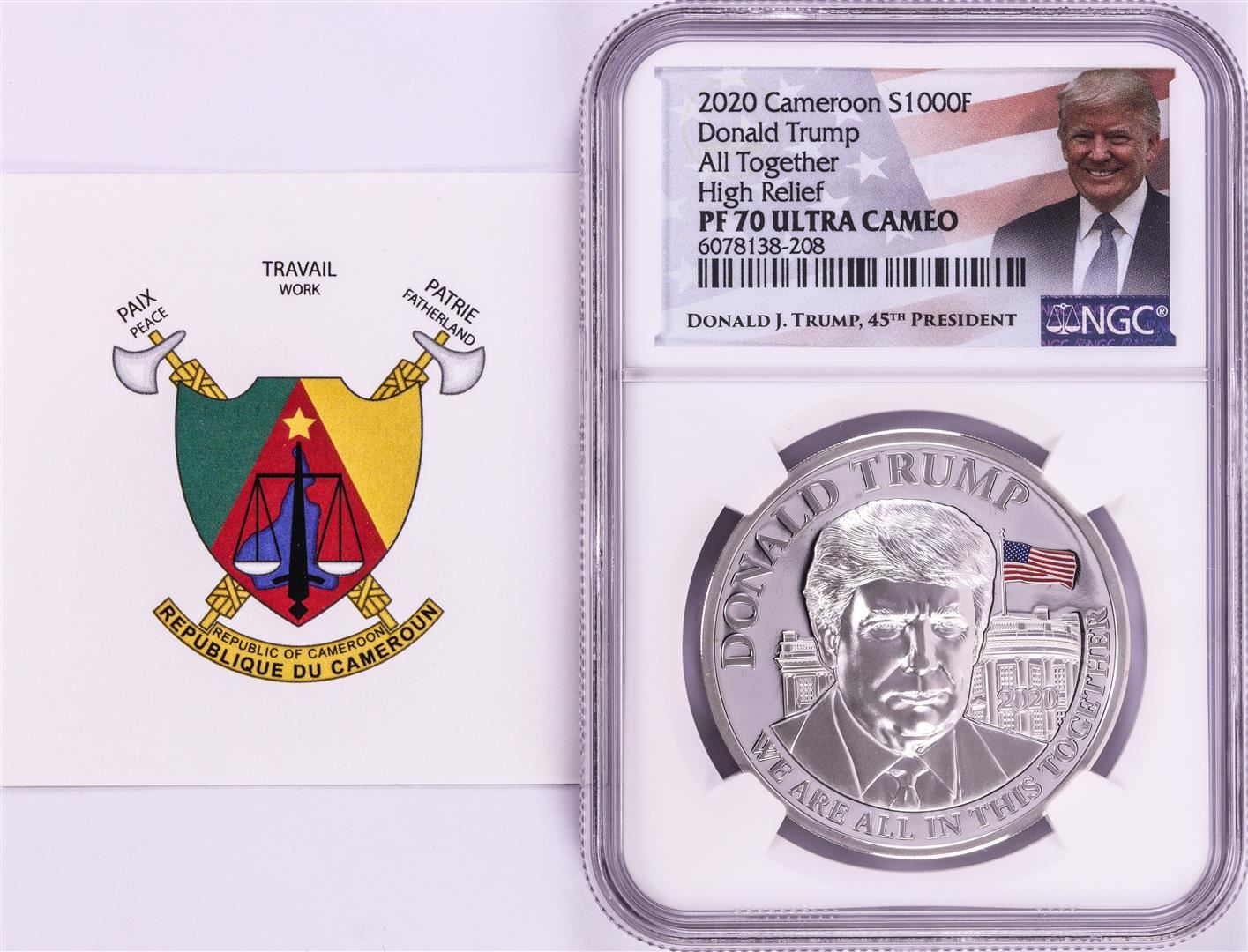 One 2020 Cameroon S1000F Donald Trump All Together High Relief PF 70 Ultra Cameo 1oz Silver .999 Coin.