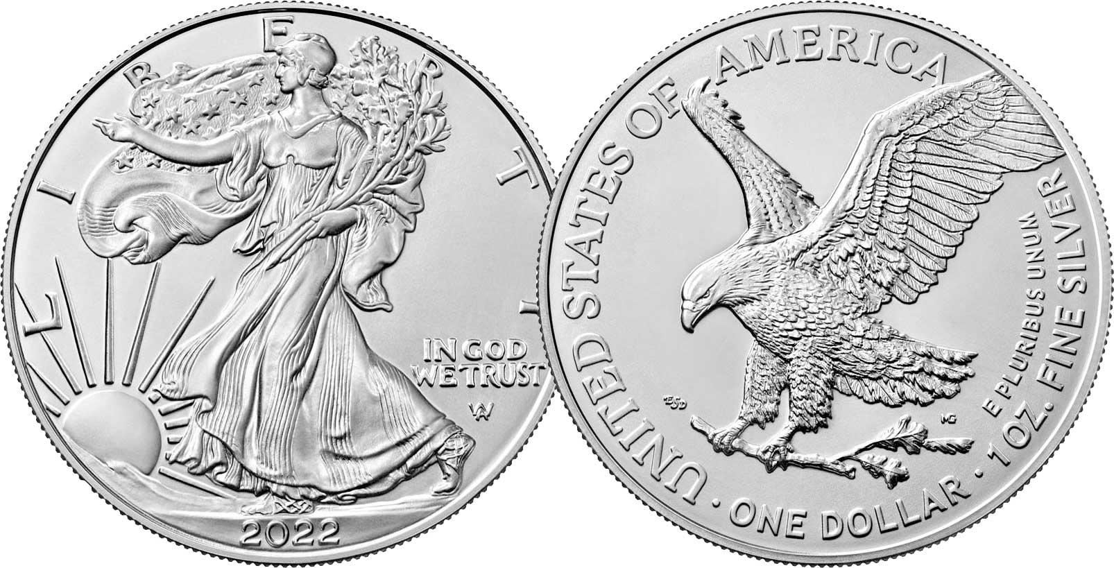 One 2022 American Silver Eagle .999 Fine Silver Dollar Coin.