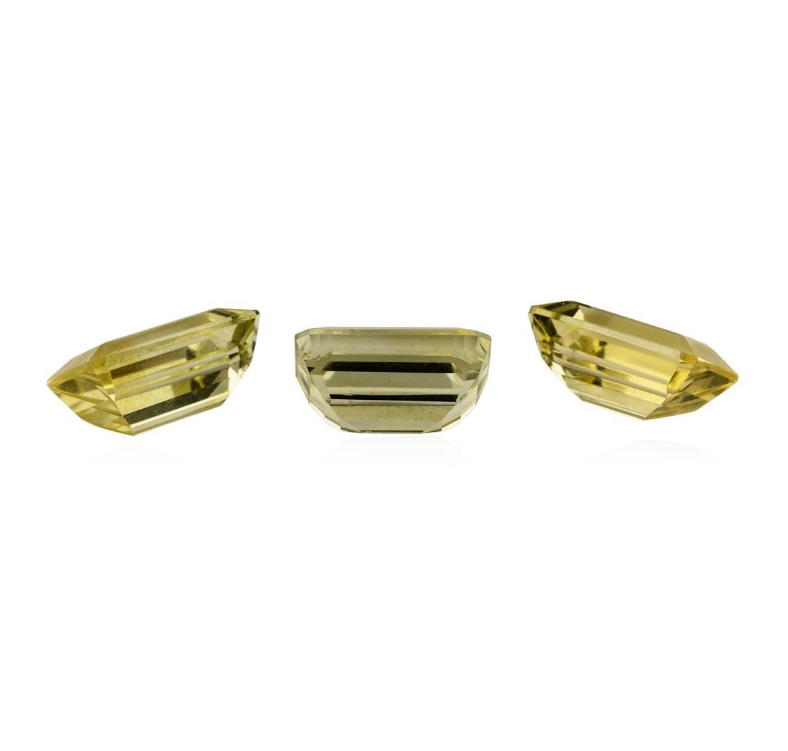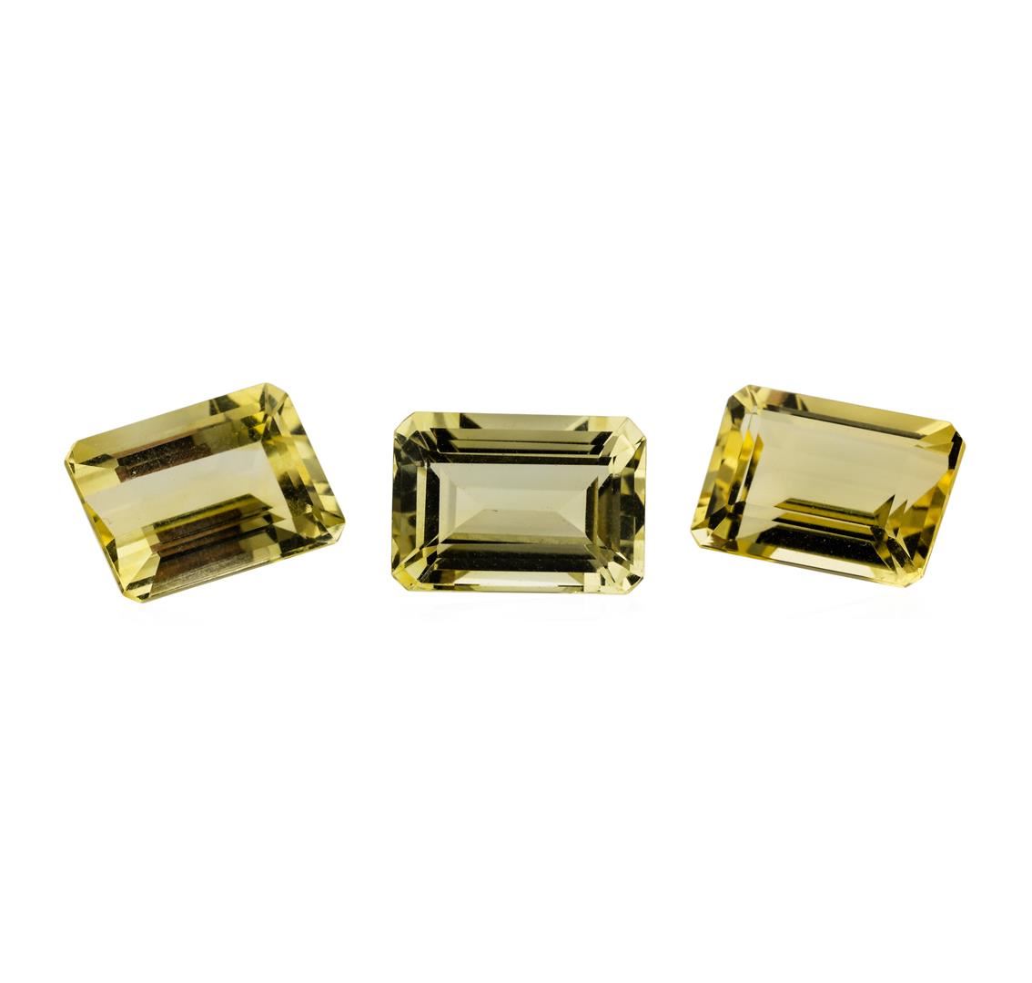 One natural emerald cut citrine quartz parcel of three with an exact weight of 21.87ctw., clarity is eye clean, slightly yellowish orange, medium to medium light. Gemological Appraisals Services estimates the retail value at $656.1 GAS Appraised.